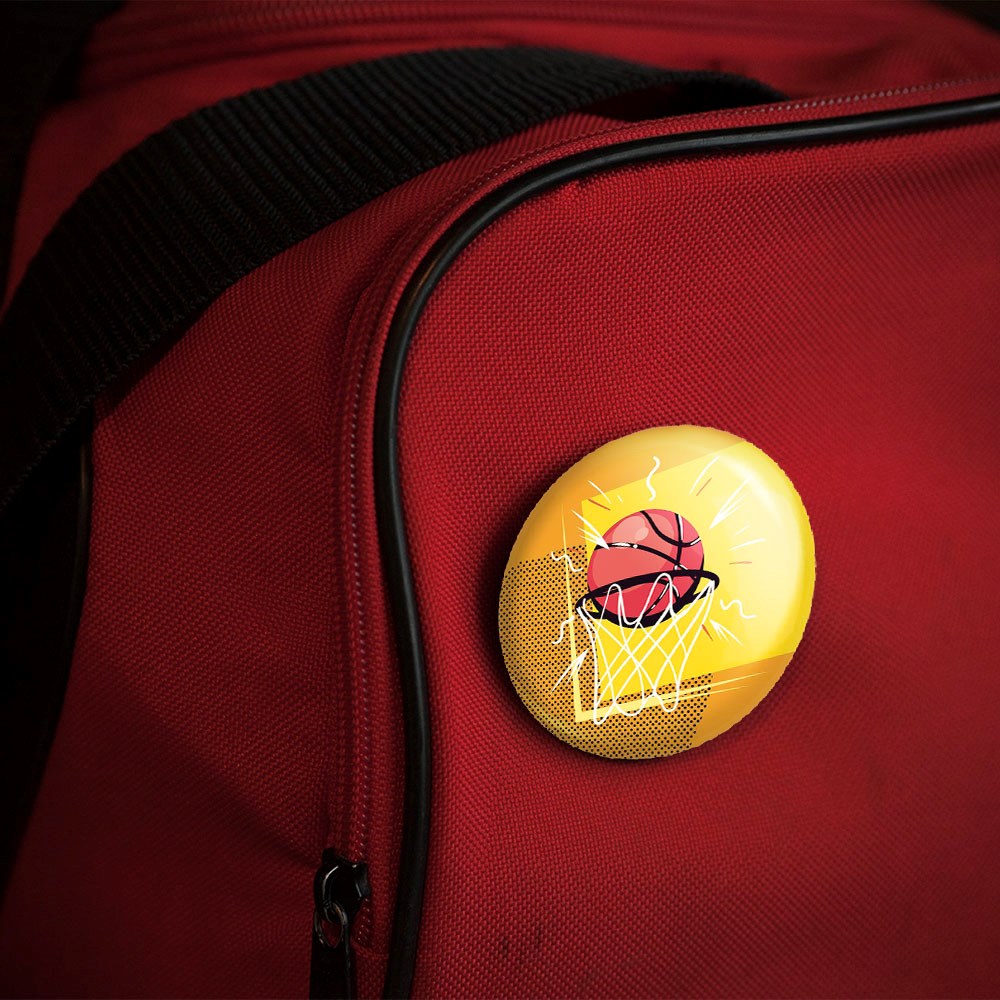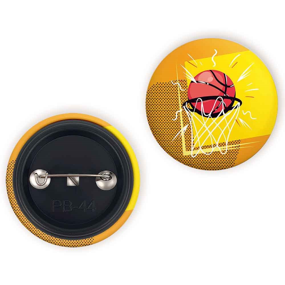پیکسل 44 میلی متری بسکتبال Basketball خندالو با روکش سلفون حرارتی مات مخملی ضدخش و قطعه پشتی رنگی تولید شده است.پلاستیکی پشت پیکسل با سوزن یک تکه ثابت و بدون لغزش و جا به جایی، ایستایی بسیار بهتری نسبت به پشتی فلزی پیکسل دارند که این مهم در تولید این محصول نیز رعایت شده است.