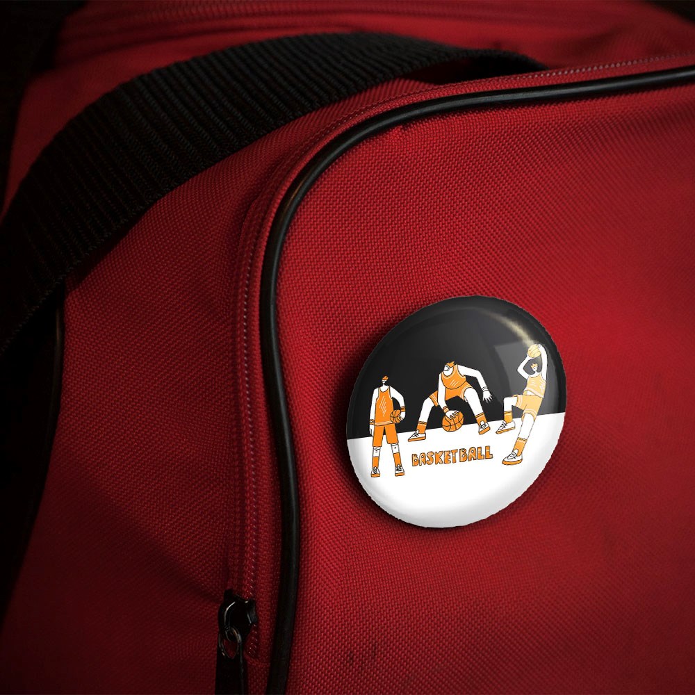 پیکسل 44 میلی متری بسکتبال Basketball خندالو با روکش سلفون حرارتی مات مخملی ضدخش و قطعه پشتی رنگی تولید شده است.پلاستیکی پشت پیکسل با سوزن یک تکه ثابت و بدون لغزش و جا به جایی، ایستایی بسیار بهتری نسبت به پشتی فلزی پیکسل دارند که این مهم در تولید این محصول نیز رعایت شده است.