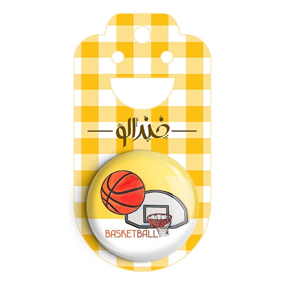 پیکسل 44 میلی متری بسکتبال Basketball خندالو با روکش سلفون حرارتی مات مخملی ضدخش و قطعه پشتی رنگی تولید شده است.پلاستیکی پشت پیکسل با سوزن یک تکه ثابت و بدون لغزش و جا به جایی، ایستایی بسیار بهتری نسبت به پشتی فلزی پیکسل دارند که این مهم در تولید این محصول نیز رعایت شده است.
