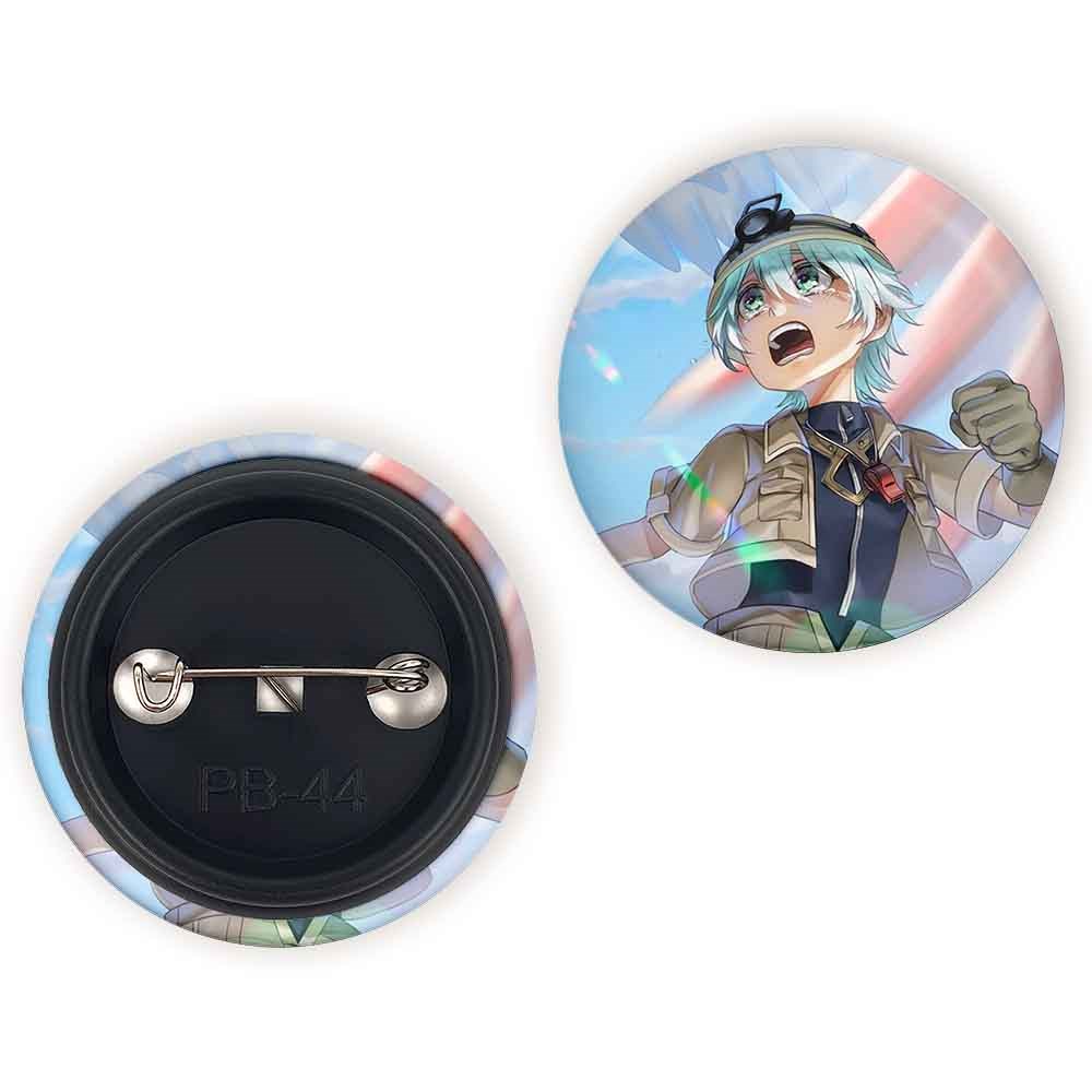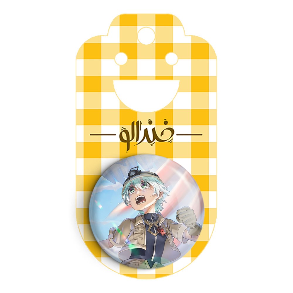 پیکسل 44 میلی متری بلاف انیمه ساخته شده پرتگاه Made in Abyss خندالو با روکش سلفون حرارتی مات مخملی ضدخش و قطعه پشتی رنگی تولید شده است.پلاستیکی پشت پیکسل با سوزن یک تکه ثابت و بدون لغزش و جا به جایی، ایستایی بسیار بهتری نسبت به پشتی فلزی پیکسل دارند که این مهم در تولید این محصول نیز رعایت شده است.