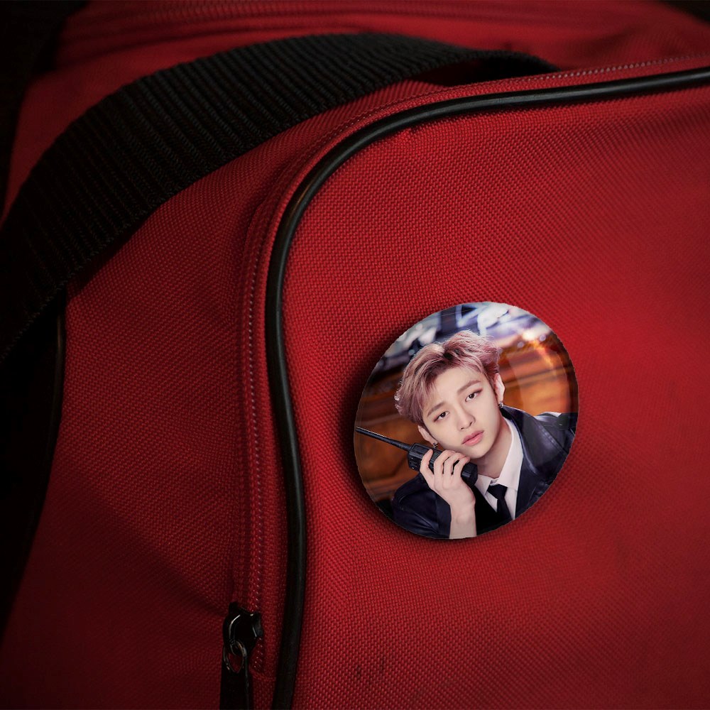 پیکسل 44 میلی متری بنگ چان گروه استری کیدز Stary Kids خندالو با روکش سلفون حرارتی مات مخملی ضدخش و قطعه پشتی رنگی تولید شده است.پلاستیکی پشت پیکسل با سوزن یک تکه ثابت و بدون لغزش و جا به جایی، ایستایی بسیار بهتری نسبت به پشتی فلزی پیکسل دارند که این مهم در تولید این محصول نیز رعایت شده است.
