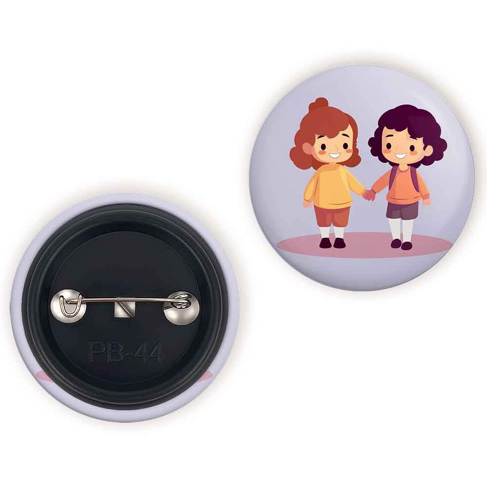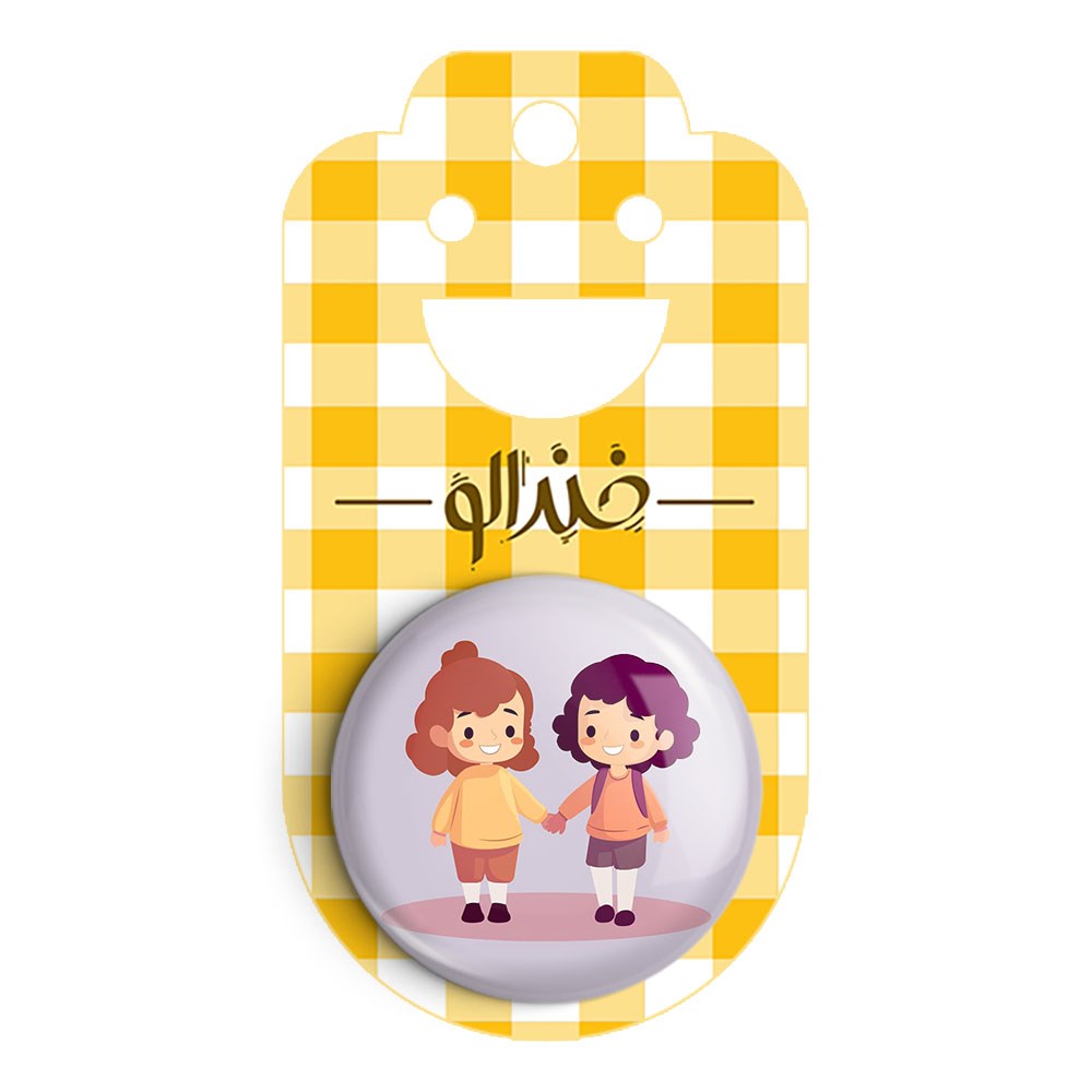 پیکسل 44 میلی متری بهترین دوستان Best Friends خندالو با روکش سلفون حرارتی مات مخملی ضدخش و قطعه پشتی رنگی تولید شده است.پلاستیکی پشت پیکسل با سوزن یک تکه ثابت و بدون لغزش و جا به جایی، ایستایی بسیار بهتری نسبت به پشتی فلزی پیکسل دارند که این مهم در تولید این محصول نیز رعایت شده است.
