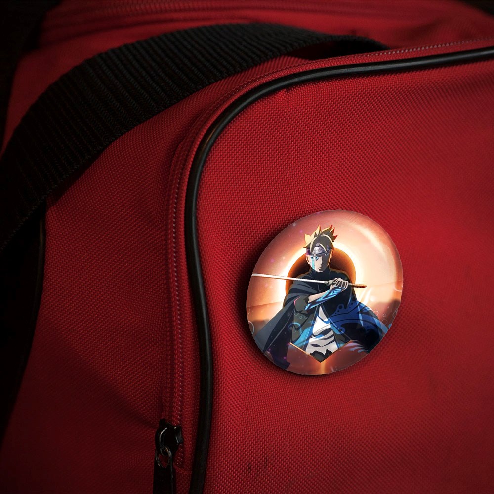 پیکسل 44 میلی متری بوروتو اوزوماکی انیمه بوروتو Boruto خندالو با روکش سلفون حرارتی مات مخملی ضدخش و قطعه پشتی رنگی تولید شده است.پلاستیکی پشت پیکسل با سوزن یک تکه ثابت و بدون لغزش و جا به جایی، ایستایی بسیار بهتری نسبت به پشتی فلزی پیکسل دارند که این مهم در تولید این محصول نیز رعایت شده است.