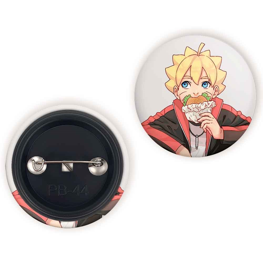 پیکسل 44 میلی متری بوروتو اوزوماکی انیمه بوروتو Boruto خندالو با روکش سلفون حرارتی مات مخملی ضدخش و قطعه پشتی رنگی تولید شده است.پلاستیکی پشت پیکسل با سوزن یک تکه ثابت و بدون لغزش و جا به جایی، ایستایی بسیار بهتری نسبت به پشتی فلزی پیکسل دارند که این مهم در تولید این محصول نیز رعایت شده است.