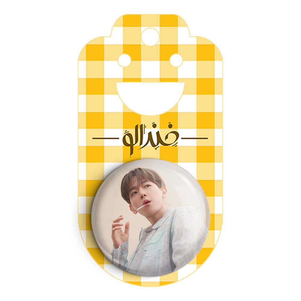 پیکسل 44 میلی متری بکهیون گروه اکسو EXO خندالو با روکش سلفون حرارتی مات مخملی ضدخش و قطعه پشتی رنگی تولید شده است.پلاستیکی پشت پیکسل با سوزن یک تکه ثابت و بدون لغزش و جا به جایی، ایستایی بسیار بهتری نسبت به پشتی فلزی پیکسل دارند که این مهم در تولید این محصول نیز رعایت شده است.