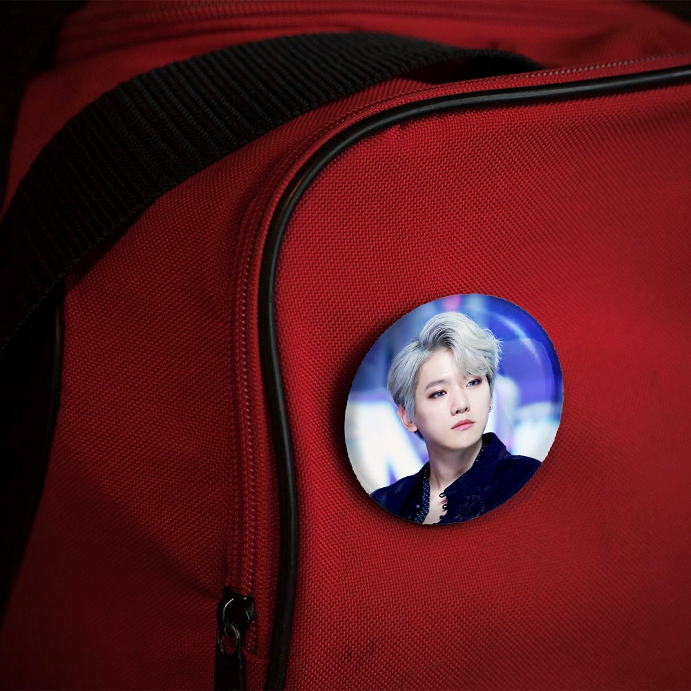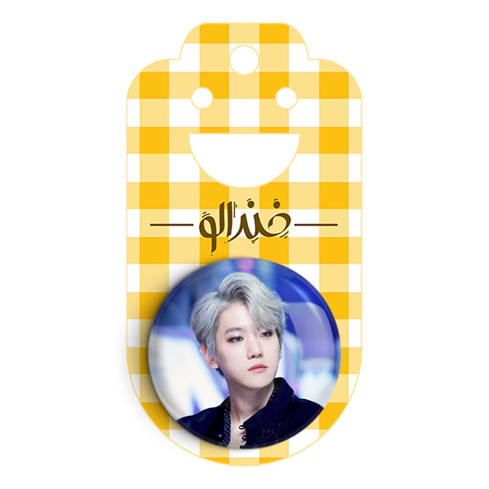 پیکسل 44 میلی متری بکهیون گروه اکسو EXO خندالو با روکش سلفون حرارتی مات مخملی ضدخش و قطعه پشتی رنگی تولید شده است.پلاستیکی پشت پیکسل با سوزن یک تکه ثابت و بدون لغزش و جا به جایی، ایستایی بسیار بهتری نسبت به پشتی فلزی پیکسل دارند که این مهم در تولید این محصول نیز رعایت شده است.