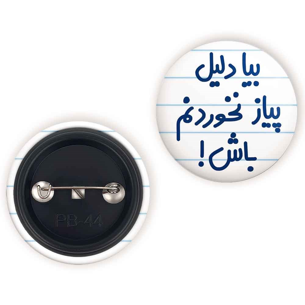 پیکسل 44 میلی متری بیا دلیل پیاز نخوردنم باش ! خندالو با روکش سلفون حرارتی مات مخملی ضدخش و قطعه پشتی رنگی تولید شده است. قطعات پلاستیکی پشت پیکسل با سوزن یک تکه ثابت و بدون لغزش و جا به جایی، ایستایی بسیار بهتری نسبت به پشتی فلزی پیکسل دارند که این مهم در تولید این محصول نیز رعایت شده است. چاپ پیکسل بیا دلیل پیاز نخوردنم باش ! نیز با دستگاه های استاندارد و با بهترین سطح کیفی صورت گرفته و طرح با شفافیتی مثال زدنی و با سلفونی بدون شکست نور بر روی پیکسل نقش بسته است. همچنین بسته بندی جذاب و مینیمال پیکسل بیا دلیل پیاز نخوردنم باش ! ، آنها را مناسب هدیه کرده است.