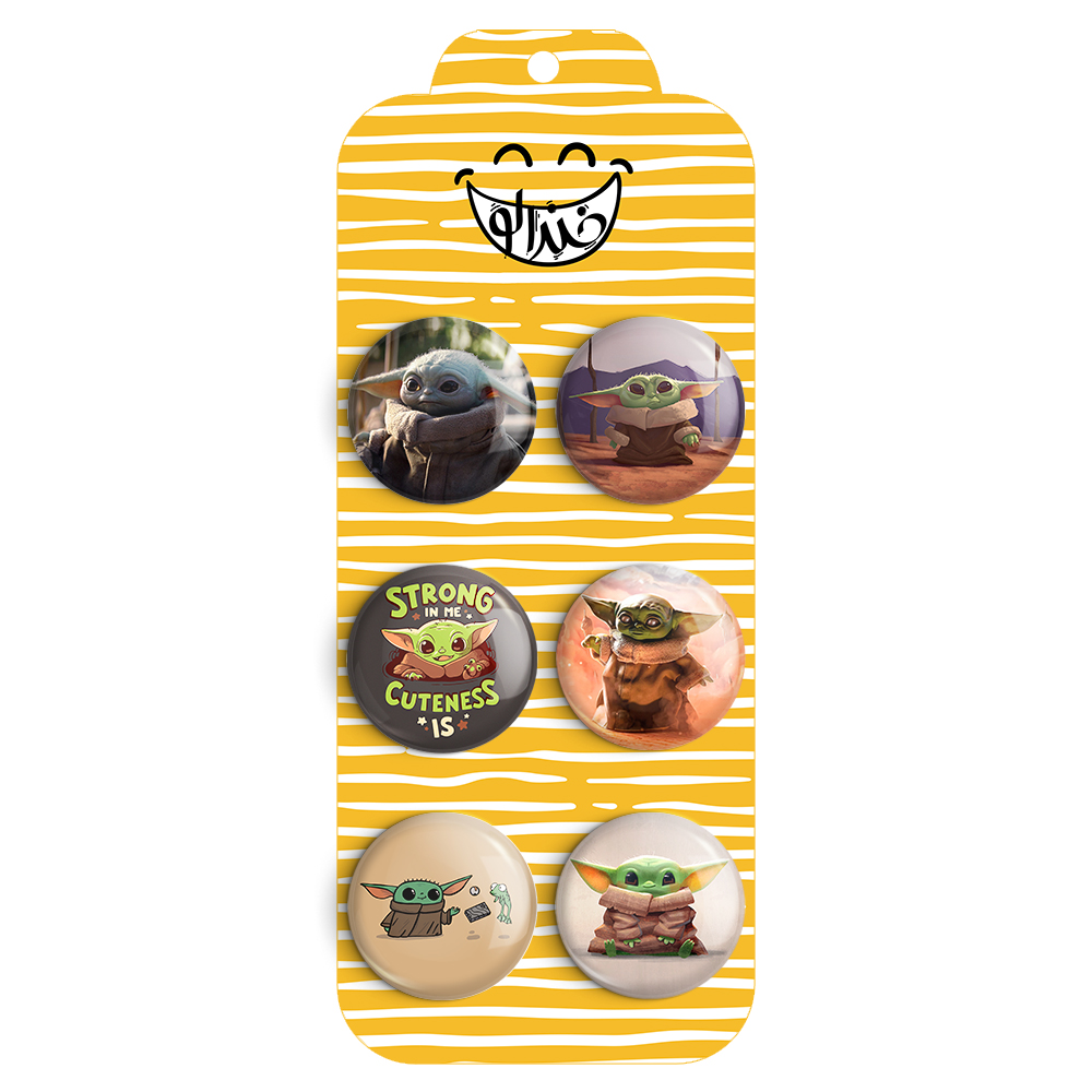 مجموعه 6 عددی پیکسل خندالو طرح بیبی یودا با روکش سلفون حرارتی براق ضدخش و قطعه پشتی رنگی تولید شده است. قطعات پشتی از میان 6 رنگ سفید، مشکی، صورتی، زرد، آبی و قرمز که با توجه به نوع و رنگبندی طرح روی پیکسل انتخاب شده اند تولید می شود و در هر بسته بندی مطابق عکس محصول می باشد. قطعات پلاستیکی پشت پیکسل با سوزن یک تکه ثابت و بدون لغزش و جا به جایی، ایستایی بسیار بهتری نسبت به پشتی فلزی پیکسل دارند که این مهم در تولید این محصول نیز رعایت شده است. چاپ پیکسل نیز با دستگاه های استاندارد و با بهترین سطح کیفی صورت گرفته و طرح با شفافیتی مثال زدنی و با سلفونی بدون شکست نور بر روی پیکسل نقش بسته است. همچنین بسته بندی جذاب و مینیمال پیکسل ها، آنها را مناسب هدیه کرده است..