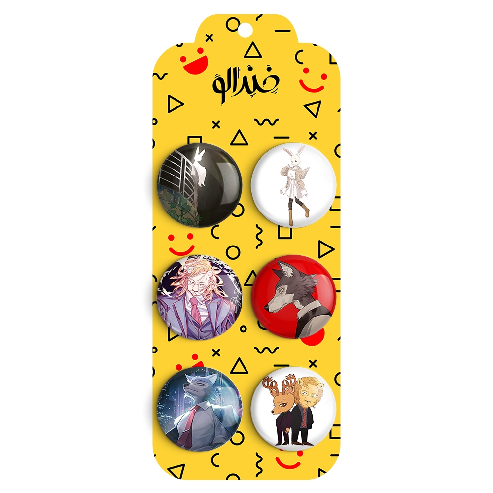 مجموعه 6 عددی پیکسل خندالو طرح بیستارز (Beastars) با روکش سلفون حرارتی براق ضدخش و قطعه پشتی رنگی تولید شده است. قطعات پشتی از میان 6 رنگ سفید، مشکی، صورتی، زرد، آبی و قرمز که با توجه به نوع و رنگبندی طرح روی پیکسل انتخاب شده اند تولید می شود و در هر بسته بندی مطابق عکس محصول می باشد.