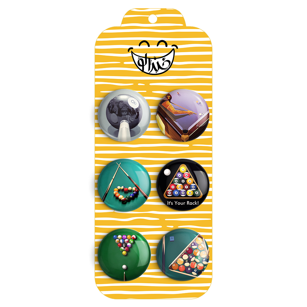 مجموعه 6 عددی پیکسل خندالو طرح بیلیارد با روکش سلفون حرارتی براق ضدخش و قطعه پشتی رنگی تولید شده است. قطعات پشتی از میان 6 رنگ سفید، مشکی، صورتی، زرد، آبی و قرمز که با توجه به نوع و رنگبندی طرح روی پیکسل انتخاب شده اند تولید می شود و در هر بسته بندی مطابق عکس محصول می باشد.