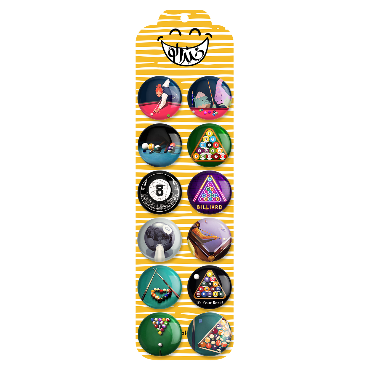 پک 12 عددی پیکسل خندالو طرح بیلیارد با روکش سلفون حرارتی براق ضدخش و قطعه پشتی رنگی تولید شده است. قطعات پشتی از میان 6 رنگ سفید، مشکی، صورتی، زرد، آبی و قرمز که با توجه به نوع و رنگبندی طرح روی پیکسل انتخاب شده اند تولید می شود و در هر بسته بندی مطابق عکس محصول می باشد. قطعات پلاستیکی پشت پیکسل با سوزن یک تکه ثابت و بدون لغزش و جا به جایی، ایستایی بسیار بهتری نسبت به پشتی فلزی پیکسل دارند که این مهم در تولید این محصول نیز رعایت شده است.