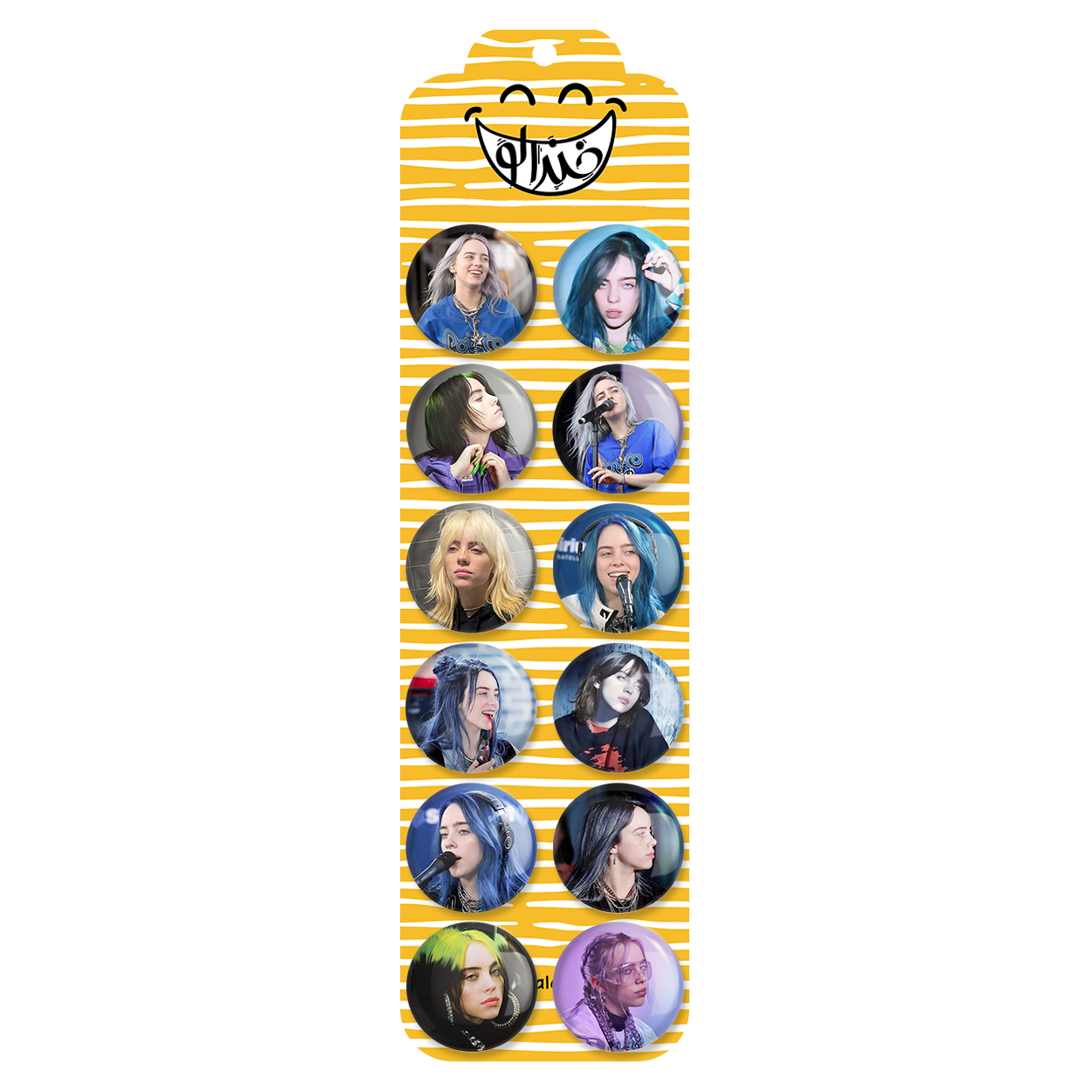 پک 12 عددی پیکسل خندالو طرح بیلی آیلیش (Billi Eilish) با روکش سلفون حرارتی براق ضدخش و قطعه پشتی رنگی تولید شده است. قطعات پشتی از میان 6 رنگ سفید، مشکی، صورتی، زرد، آبی و قرمز که با توجه به نوع و رنگبندی طرح روی پیکسل انتخاب شده اند تولید می شود و در هر بسته بندی مطابق عکس محصول می باشد. قطعات پلاستیکی پشت پیکسل با سوزن یک تکه ثابت و بدون لغزش و جا به جایی، ایستایی بسیار بهتری نسبت به پشتی فلزی پیکسل دارند که این مهم در تولید این محصول نیز رعایت شده است.