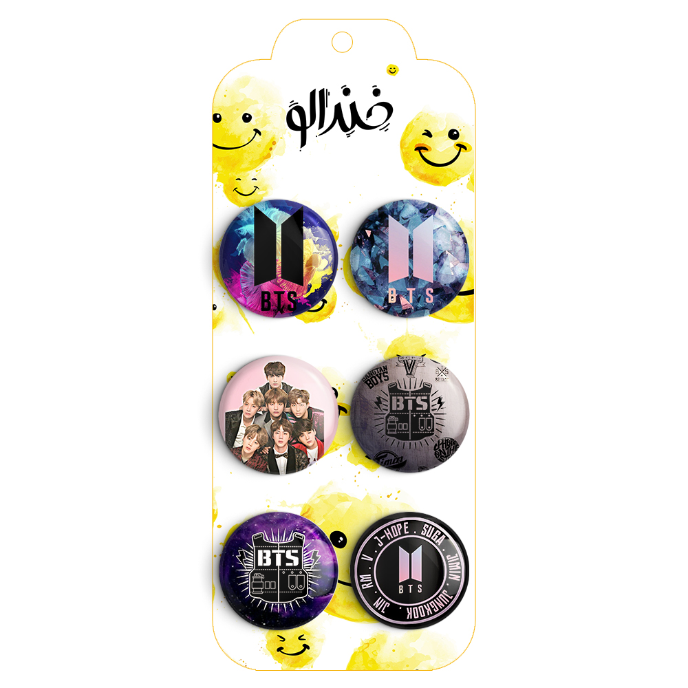 مجموعه 6 عددی پیکسل خندالو طرح بی تی اس (BTS) با روکش سلفون حرارتی براق ضدخش و قطعه پشتی رنگی تولید شده است. قطعات پشتی از میان 6 رنگ سفید، مشکی، صورتی، زرد، آبی و قرمز که با توجه به نوع و رنگبندی طرح روی پیکسل انتخاب شده اند تولید می شود و در هر بسته بندی مطابق عکس محصول می باشد. قطعات پلاستیکی پشت پیکسل با سوزن یک تکه ثابت و بدون لغزش و جا به جایی، ایستایی بسیار بهتری نسبت به پشتی فلزی پیکسل دارند که این مهم در تولید این محصول نیز رعایت شده است. چاپ پیکسل نیز با دستگاه های استاندارد و با بهترین سطح کیفی صورت گرفته و طرح با شفافیتی مثال زدنی و با سلفونی بدون شکست نور بر روی پیکسل نقش بسته است. همچنین بسته بندی جذاب و مینیمال پیکسل ها، آنها را مناسب هدیه کرده است..