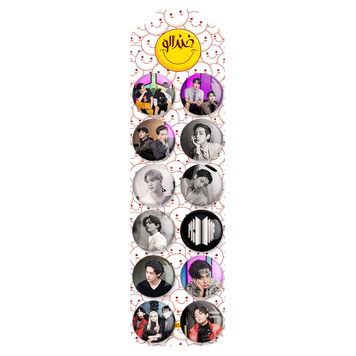 پک 12 عددی پیکسل خندالو طرح بی تی اس BTS با روکش سلفون حرارتی براق ضدخش و قطعه پشتی رنگی تولید شده است. قطعات پشتی از میان 6 رنگ سفید، مشکی، صورتی، زرد، آبی و قرمز که با توجه به نوع و رنگبندی طرح روی پیکسل انتخاب شده اند تولید می شود و در هر بسته بندی مطابق عکس محصول می باشد. قطعات پلاستیکی پشت پیکسل با سوزن یک تکه ثابت و بدون لغزش و جا به جایی، ایستایی بسیار بهتری نسبت به پشتی فلزی پیکسل دارند که این مهم در تولید این محصول نیز رعایت شده است.