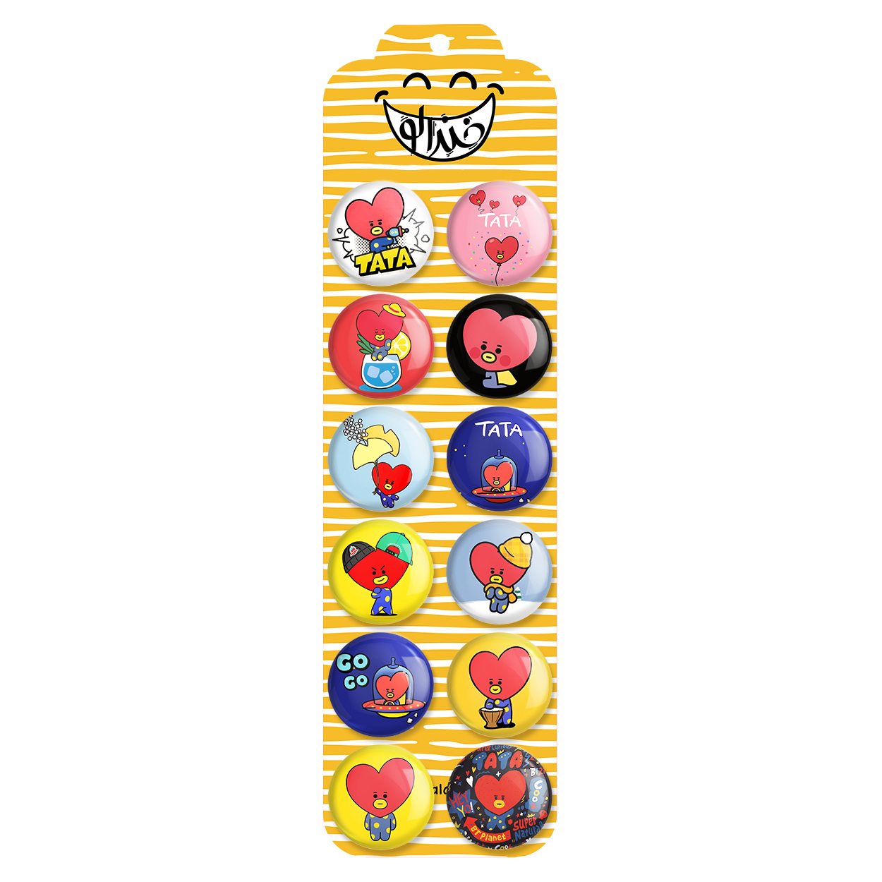 پک 12 عددی پیکسل خندالو طرح تاتا BT21 Tata با روکش سلفون حرارتی براق ضدخش و قطعه پشتی رنگی تولید شده است. قطعات پشتی از میان 6 رنگ سفید، مشکی، صورتی، زرد، آبی و قرمز که با توجه به نوع و رنگبندی طرح روی پیکسل انتخاب شده اند تولید می شود و در هر بسته بندی مطابق عکس محصول می باشد. قطعات پلاستیکی پشت پیکسل با سوزن یک تکه ثابت و بدون لغزش و جا به جایی، ایستایی بسیار بهتری نسبت به پشتی فلزی پیکسل دارند که این مهم در تولید این محصول نیز رعایت شده است. چاپ پیکسل طرح تاتا BT21 Tata بسته ۱۲ عددی نیز با دستگاه های استاندارد و با بهترین سطح کیفی صورت گرفته و طرح با شفافیتی مثال زدنی و با سلفونی بدون شکست نور بر روی پیکسل نقش بسته است.