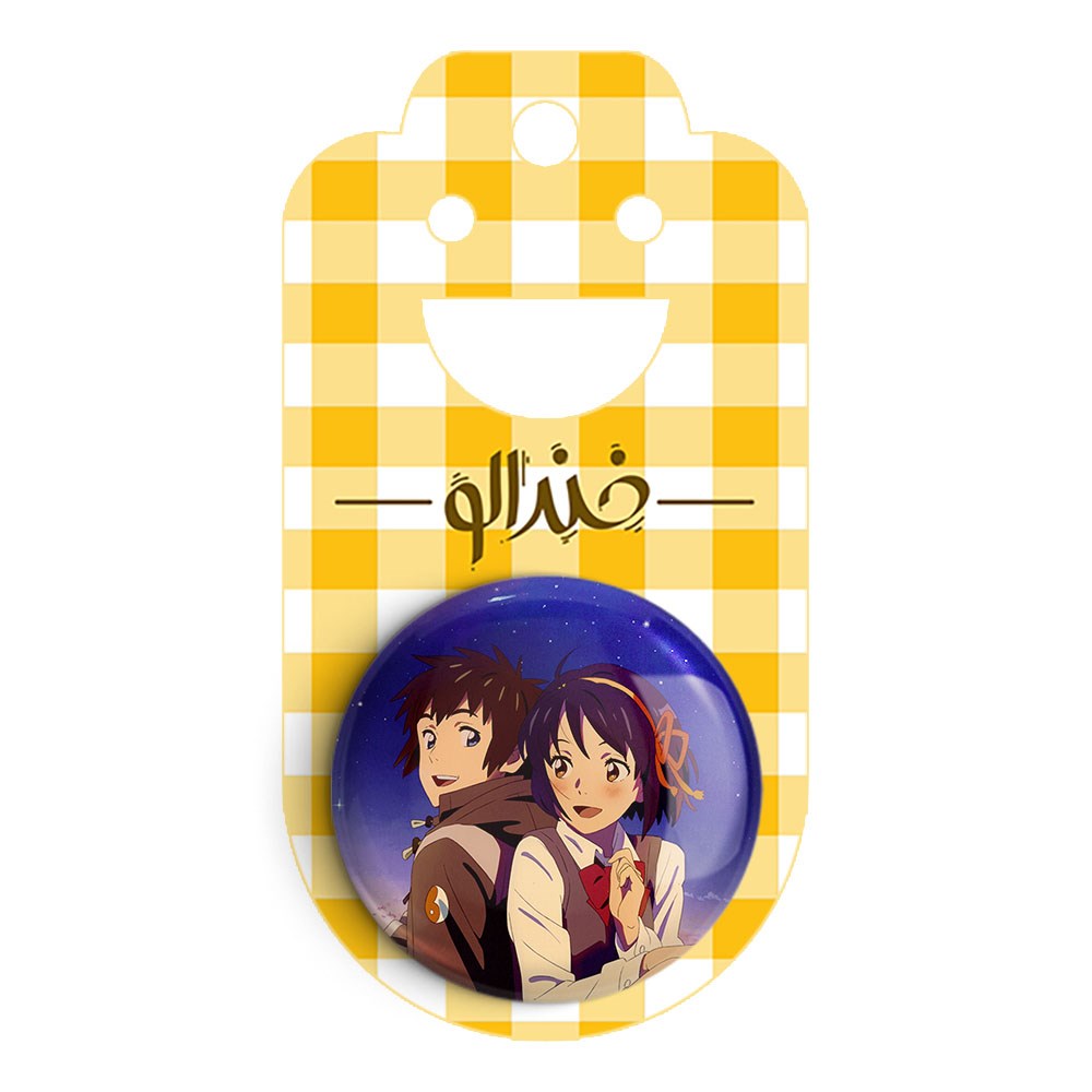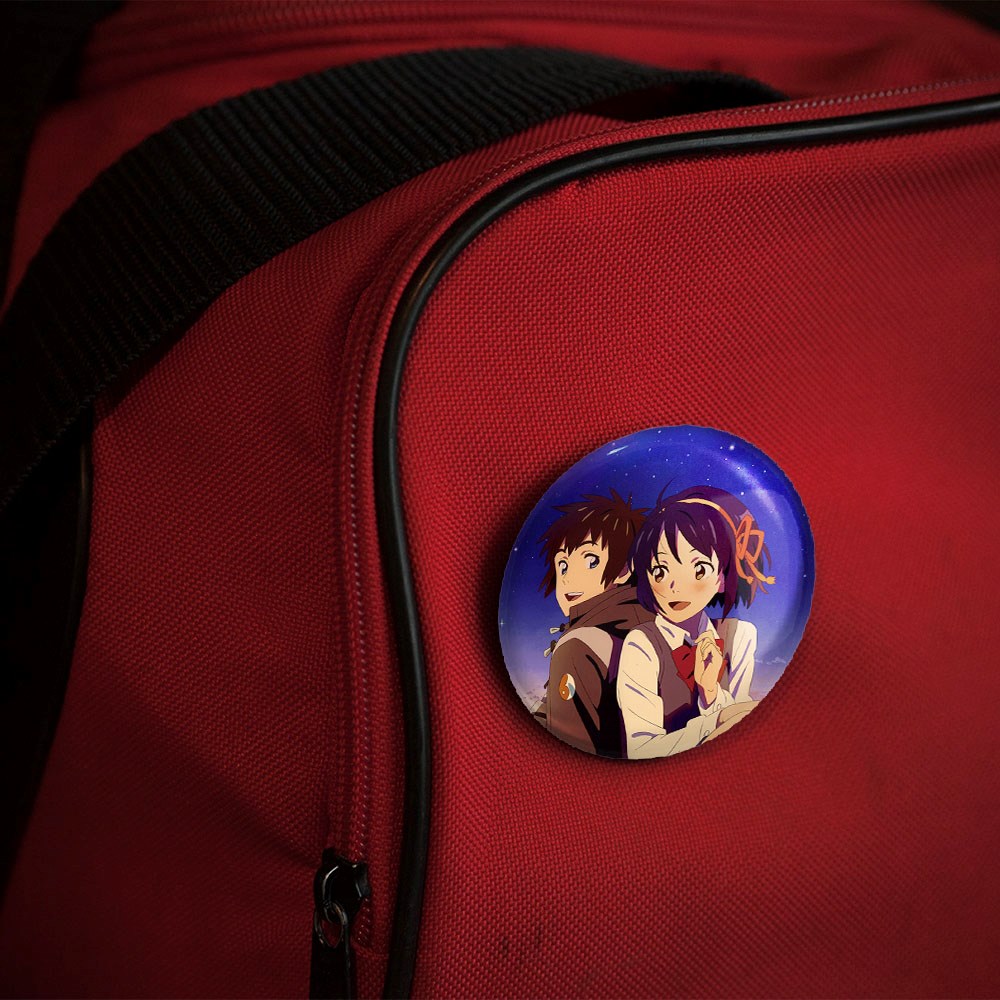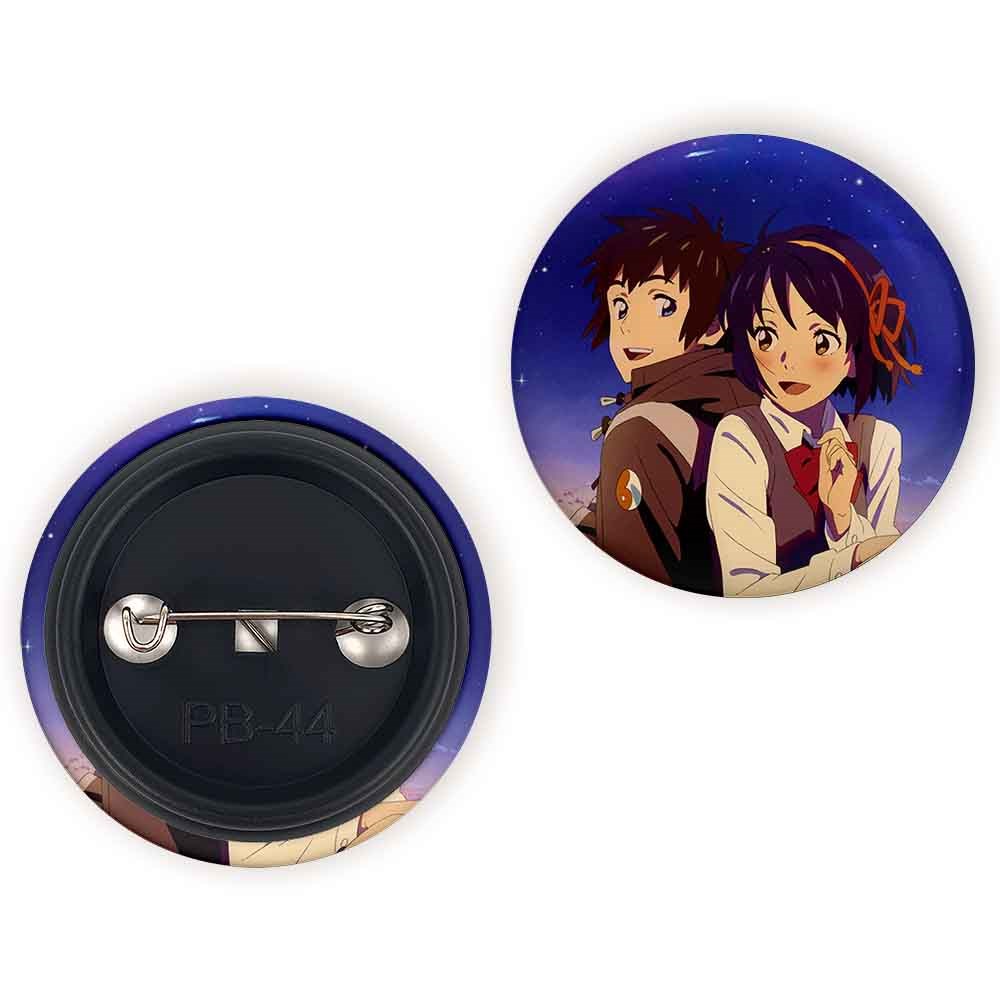 پیکسل 44 میلی متری تاکی تاچیبانا و میتسویا میامیزو انیمه یورنیم Your Name خندالو با روکش سلفون حرارتی مات مخملی ضدخش و قطعه پشتی رنگی تولید شده است.پلاستیکی پشت پیکسل با سوزن یک تکه ثابت و بدون لغزش و جا به جایی، ایستایی بسیار بهتری نسبت به پشتی فلزی پیکسل دارند که این مهم در تولید این محصول نیز رعایت شده است.