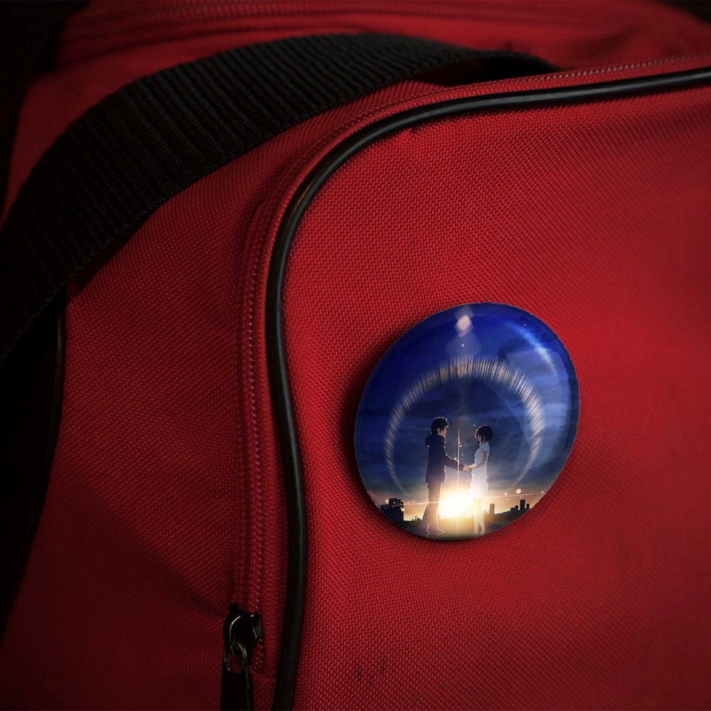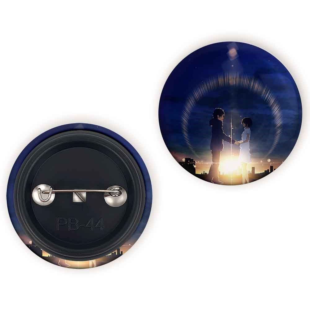 پیکسل 44 میلی متری تاکی تاچیبانا و میتسویا میامیزو انیمه یورنیم Your Name خندالو با روکش سلفون حرارتی مات مخملی ضدخش و قطعه پشتی رنگی تولید شده است.پلاستیکی پشت پیکسل با سوزن یک تکه ثابت و بدون لغزش و جا به جایی، ایستایی بسیار بهتری نسبت به پشتی فلزی پیکسل دارند که این مهم در تولید این محصول نیز رعایت شده است.