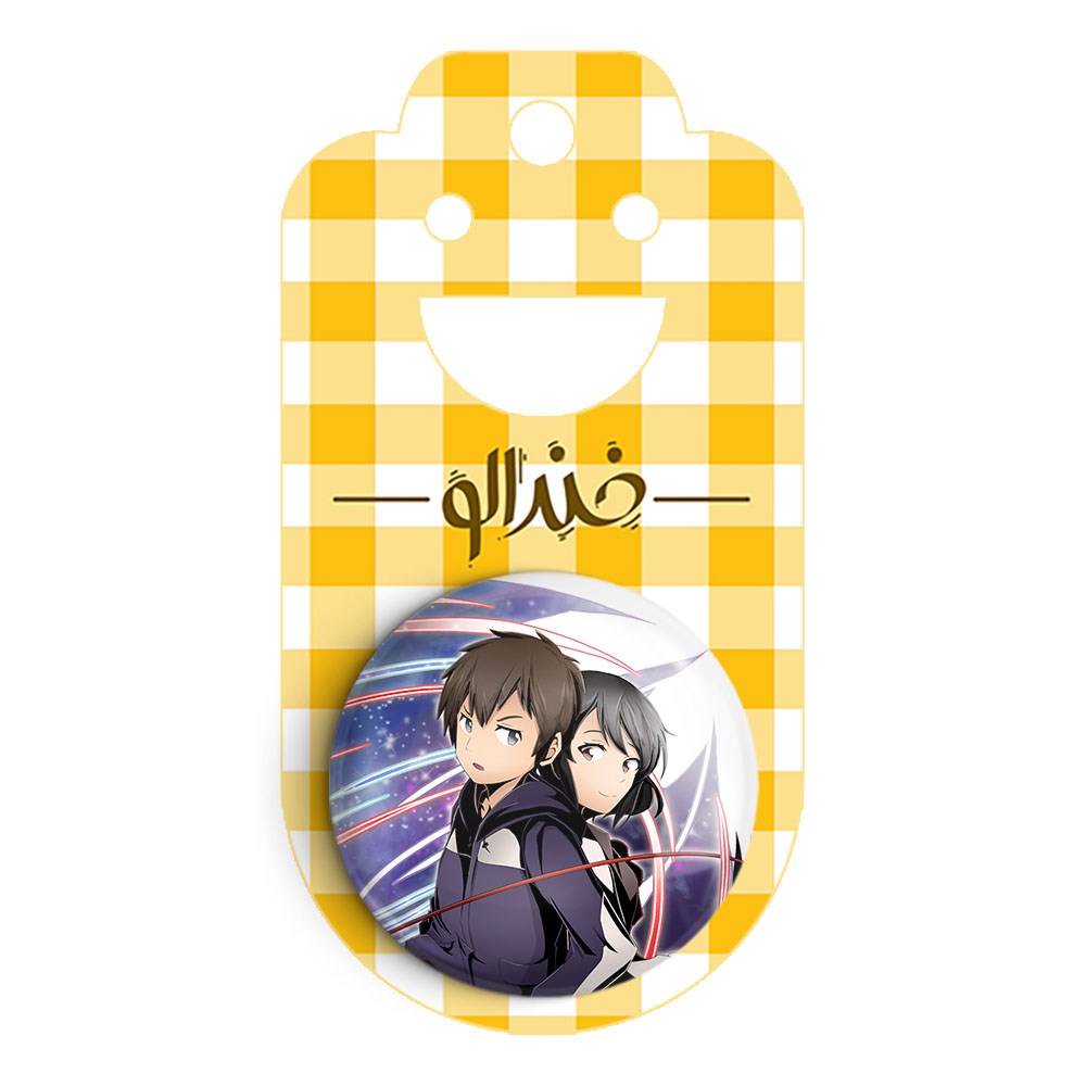 پیکسل 44 میلی متری تاکی تاچیبانا و میتسویا میامیزو انیمه یورنیم Your Name خندالو با روکش سلفون حرارتی مات مخملی ضدخش و قطعه پشتی رنگی تولید شده است.پلاستیکی پشت پیکسل با سوزن یک تکه ثابت و بدون لغزش و جا به جایی، ایستایی بسیار بهتری نسبت به پشتی فلزی پیکسل دارند که این مهم در تولید این محصول نیز رعایت شده است.