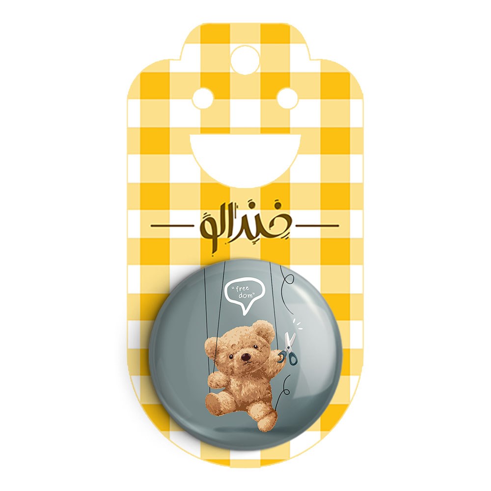 پیکسل 44 میلی متری تدی Teddy خندالو با روکش سلفون حرارتی مات مخملی ضدخش و قطعه پشتی رنگی تولید شده است.پلاستیکی پشت پیکسل با سوزن یک تکه ثابت و بدون لغزش و جا به جایی، ایستایی بسیار بهتری نسبت به پشتی فلزی پیکسل دارند که این مهم در تولید این محصول نیز رعایت شده است.