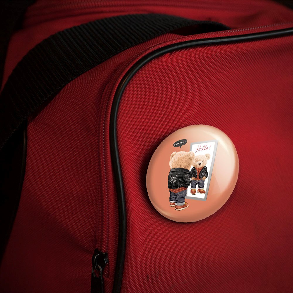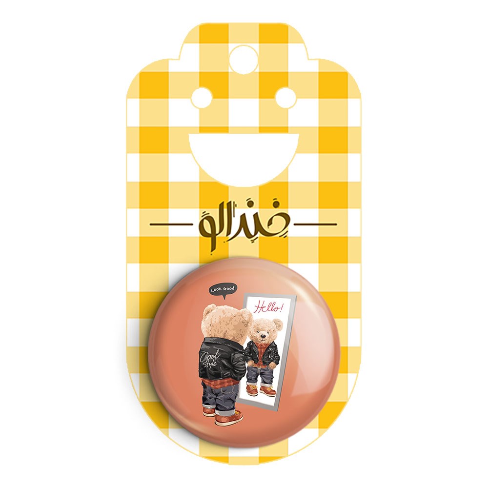 پیکسل 44 میلی متری تدی Teddy خندالو با روکش سلفون حرارتی مات مخملی ضدخش و قطعه پشتی رنگی تولید شده است.پلاستیکی پشت پیکسل با سوزن یک تکه ثابت و بدون لغزش و جا به جایی، ایستایی بسیار بهتری نسبت به پشتی فلزی پیکسل دارند که این مهم در تولید این محصول نیز رعایت شده است.
