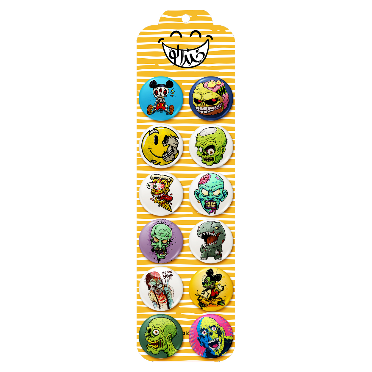 پک 12 عددی پیکسل خندالو طرح ترسناک (Scary) با روکش سلفون حرارتی براق ضدخش و قطعه پشتی رنگی تولید شده است. قطعات پشتی از میان 6 رنگ سفید، مشکی، صورتی، زرد، آبی و قرمز که با توجه به نوع و رنگبندی طرح روی پیکسل انتخاب شده اند تولید می شود و در هر بسته بندی مطابق عکس محصول می باشد. قطعات پلاستیکی پشت پیکسل با سوزن یک تکه ثابت و بدون لغزش و جا به جایی، ایستایی بسیار بهتری نسبت به پشتی فلزی پیکسل دارند که این مهم در تولید این محصول نیز رعایت شده است.