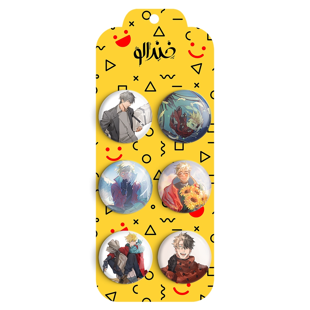 مجموعه 6 عددی پیکسل خندالو طرح تریگان (Trigun) با روکش سلفون حرارتی براق ضدخش و قطعه پشتی رنگی تولید شده است. قطعات پشتی از میان 6 رنگ سفید، مشکی، صورتی، زرد، آبی و قرمز که با توجه به نوع و رنگبندی طرح روی پیکسل انتخاب شده اند تولید می شود و در هر بسته بندی مطابق عکس محصول می باشد.