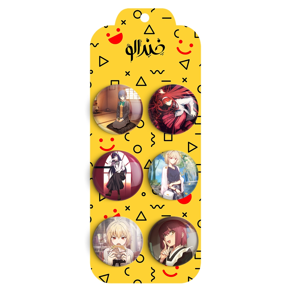 مجموعه 6 عددی پیکسل خندالو طرح تسوکی هیمه‌ (Tsukihime) با روکش سلفون حرارتی براق ضدخش و قطعه پشتی رنگی تولید شده است. قطعات پشتی از میان 6 رنگ سفید، مشکی، صورتی، زرد، آبی و قرمز که با توجه به نوع و رنگبندی طرح روی پیکسل انتخاب شده اند تولید می شود و در هر بسته بندی مطابق عکس محصول می باشد.