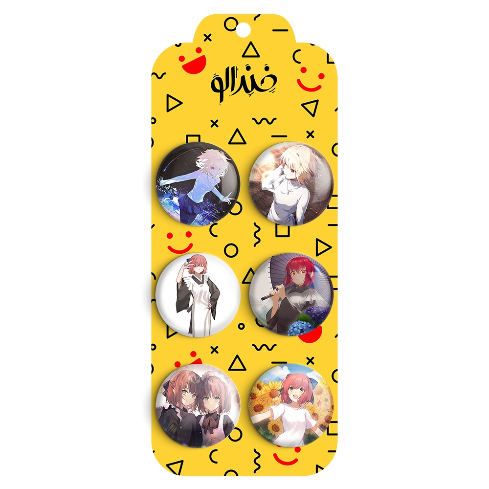 مجموعه 6 عددی پیکسل خندالو طرح تسوکی هیمه‌ (Tsukihime) با روکش سلفون حرارتی براق ضدخش و قطعه پشتی رنگی تولید شده است. قطعات پشتی از میان 6 رنگ سفید، مشکی، صورتی، زرد، آبی و قرمز که با توجه به نوع و رنگبندی طرح روی پیکسل انتخاب شده اند تولید می شود و در هر بسته بندی مطابق عکس محصول می باشد.