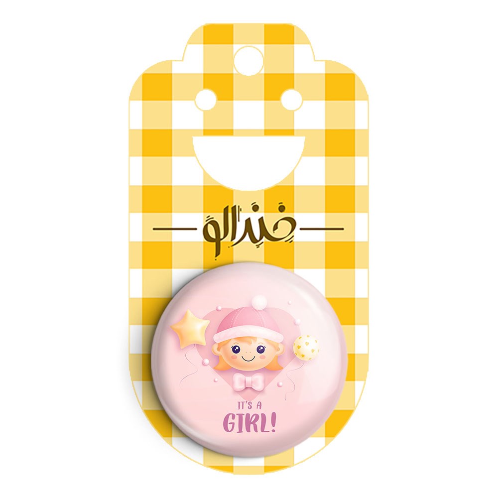 پیکسل 44 میلی متری تعیین جنسیت خندالو با روکش سلفون حرارتی مات مخملی ضدخش و قطعه پشتی رنگی تولید شده است.پلاستیکی پشت پیکسل با سوزن یک تکه ثابت و بدون لغزش و جا به جایی، ایستایی بسیار بهتری نسبت به پشتی فلزی پیکسل دارند که این مهم در تولید این محصول نیز رعایت شده است.