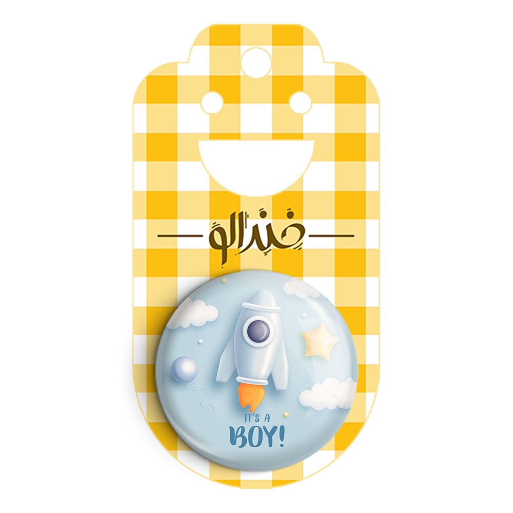پیکسل 44 میلی متری تعیین جنسیت خندالو با روکش سلفون حرارتی مات مخملی ضدخش و قطعه پشتی رنگی تولید شده است.پلاستیکی پشت پیکسل با سوزن یک تکه ثابت و بدون لغزش و جا به جایی، ایستایی بسیار بهتری نسبت به پشتی فلزی پیکسل دارند که این مهم در تولید این محصول نیز رعایت شده است.