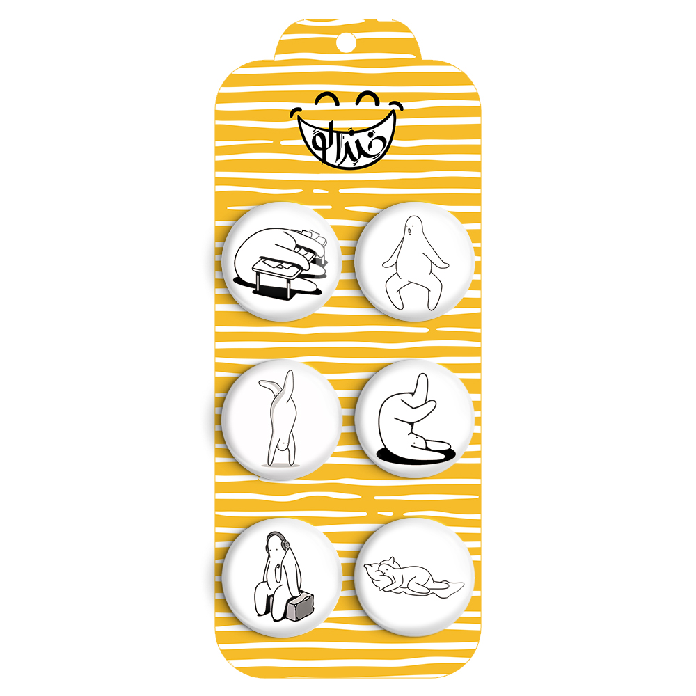 مجموعه 6 عددی پیکسل خندالو طرح تنبل خسته با روکش سلفون حرارتی براق ضدخش و قطعه پشتی رنگی تولید شده است. قطعات پشتی از میان 6 رنگ سفید، مشکی، صورتی، زرد، آبی و قرمز که با توجه به نوع و رنگبندی طرح روی پیکسل انتخاب شده اند تولید می شود و در هر بسته بندی مطابق عکس محصول می باشد.
