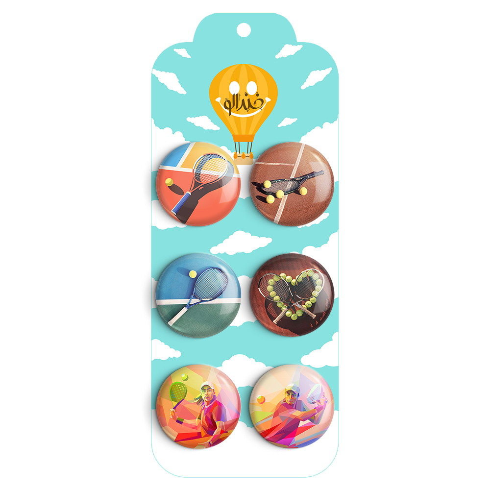 مجموعه 6 عددی پیکسل خندالو طرح تنیس (Tennis) با روکش سلفون حرارتی براق ضدخش و قطعه پشتی رنگی تولید شده است. قطعات پشتی از میان 6 رنگ سفید، مشکی، صورتی، زرد، آبی و قرمز که با توجه به نوع و رنگبندی طرح روی پیکسل انتخاب شده اند تولید می شود و در هر بسته بندی مطابق عکس محصول می باشد. قطعات پلاستیکی پشت پیکسل با سوزن یک تکه ثابت و بدون لغزش و جا به جایی، ایستایی بسیار بهتری نسبت به پشتی فلزی پیکسل دارند که این مهم در تولید این محصول نیز رعایت شده است. چاپ پیکسل نیز با دستگاه های استاندارد و با بهترین سطح کیفی صورت گرفته و طرح با شفافیتی مثال زدنی و با سلفونی بدون شکست نور بر روی پیکسل نقش بسته است. همچنین بسته بندی جذاب و مینیمال پیکسل ها، آنها را مناسب هدیه کرده است..