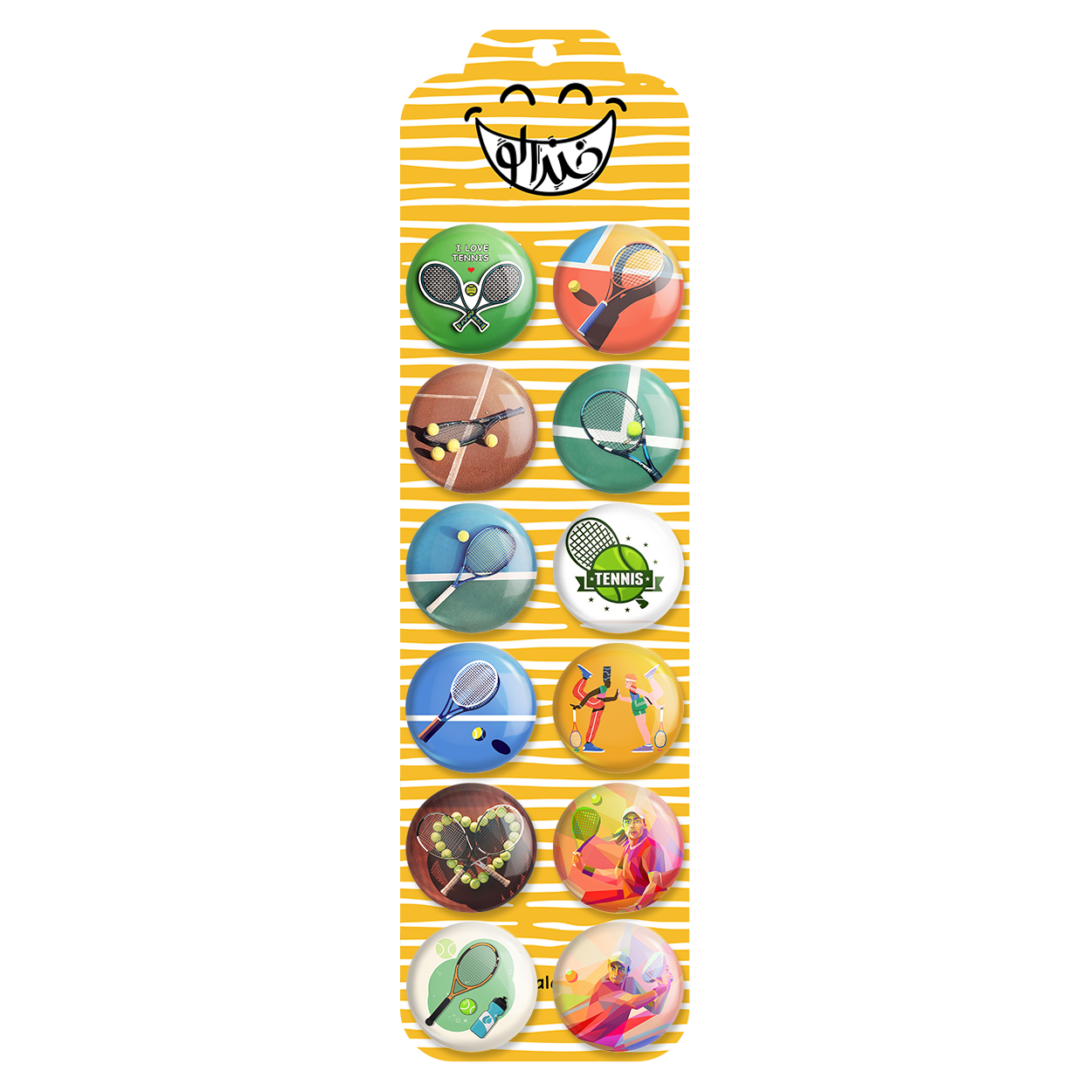 پک 12 عددی پیکسل خندالو طرح تنیس (Tennis) با روکش سلفون حرارتی براق ضدخش و قطعه پشتی رنگی تولید شده است. قطعات پشتی از میان 6 رنگ سفید، مشکی، صورتی، زرد، آبی و قرمز که با توجه به نوع و رنگبندی طرح روی پیکسل انتخاب شده اند تولید می شود و در هر بسته بندی مطابق عکس محصول می باشد. قطعات پلاستیکی پشت پیکسل با سوزن یک تکه ثابت و بدون لغزش و جا به جایی، ایستایی بسیار بهتری نسبت به پشتی فلزی پیکسل دارند که این مهم در تولید این محصول نیز رعایت شده است.