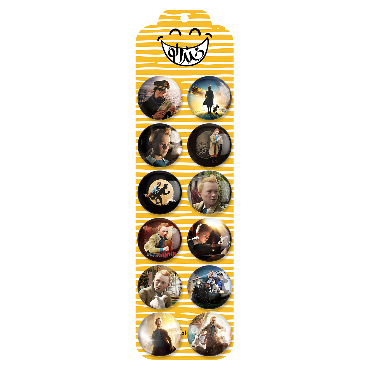 پک 12 عددی پیکسل خندالو طرح تن تن (Tintin) با روکش سلفون حرارتی براق ضدخش و قطعه پشتی رنگی تولید شده است. قطعات پشتی از میان 6 رنگ سفید، مشکی، صورتی، زرد، آبی و قرمز که با توجه به نوع و رنگبندی طرح روی پیکسل انتخاب شده اند تولید می شود و در هر بسته بندی مطابق عکس محصول می باشد. قطعات پلاستیکی پشت پیکسل با سوزن یک تکه ثابت و بدون لغزش و جا به جایی، ایستایی بسیار بهتری نسبت به پشتی فلزی پیکسل دارند که این مهم در تولید این محصول نیز رعایت شده است.