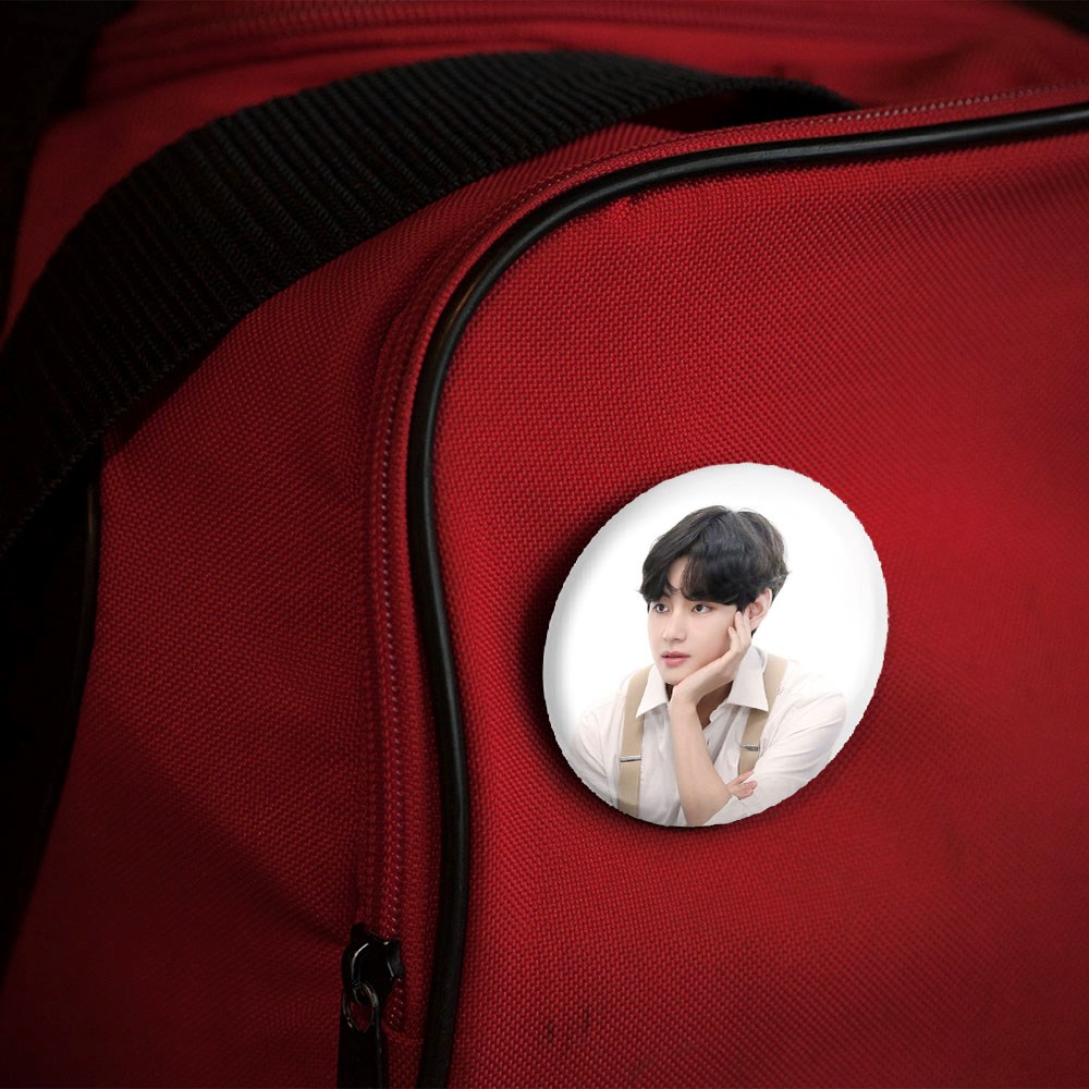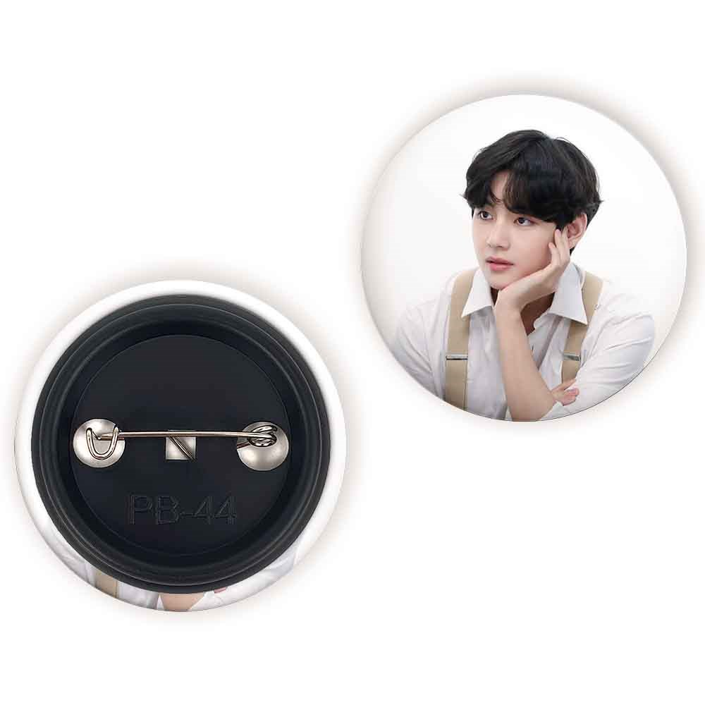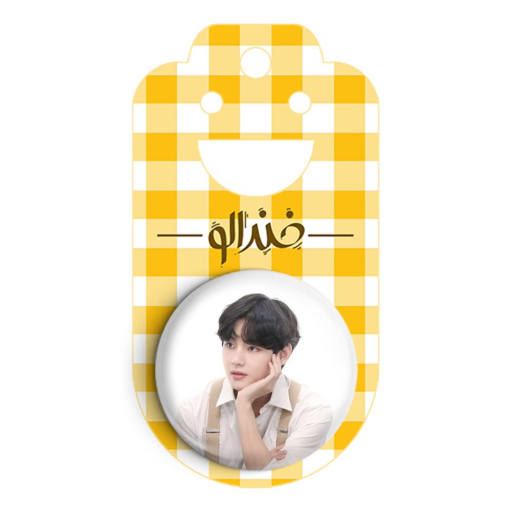 پیکسل 44 میلی متری تهیونگ وی Taehyung گروه بی تی اس BTS خندالو با روکش سلفون حرارتی مات مخملی ضدخش و قطعه پشتی رنگی تولید شده است.پلاستیکی پشت پیکسل با سوزن یک تکه ثابت و بدون لغزش و جا به جایی، ایستایی بسیار بهتری نسبت به پشتی فلزی پیکسل دارند که این مهم در تولید این محصول نیز رعایت شده است.