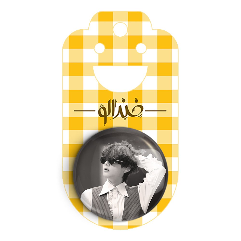 پیکسل 44 میلی متری تهیونگ وی Taehyung گروه بی تی اس BTS خندالو با روکش سلفون حرارتی مات مخملی ضدخش و قطعه پشتی رنگی تولید شده است.پلاستیکی پشت پیکسل با سوزن یک تکه ثابت و بدون لغزش و جا به جایی، ایستایی بسیار بهتری نسبت به پشتی فلزی پیکسل دارند که این مهم در تولید این محصول نیز رعایت شده است.