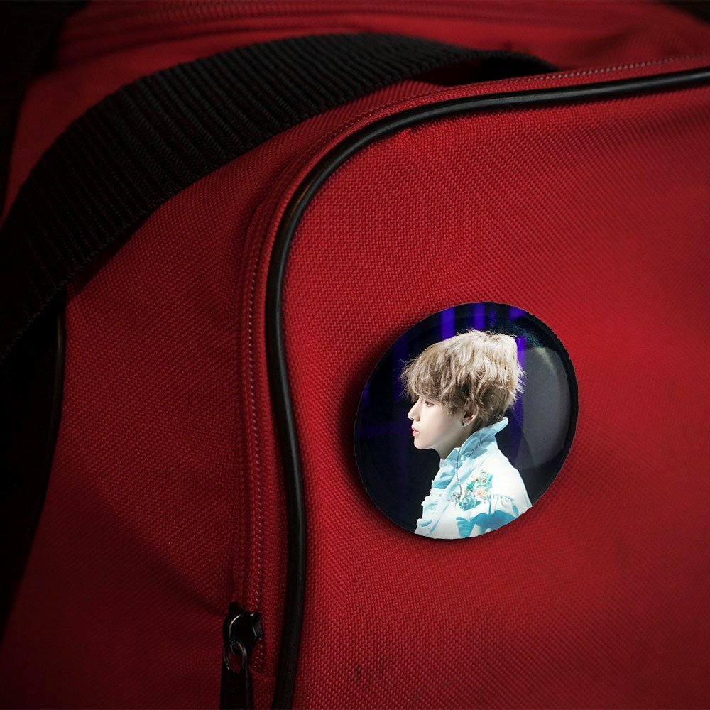 پیکسل 44 میلی متری تهیونگ وی Taehyung گروه بی تی اس BTS خندالو با روکش سلفون حرارتی مات مخملی ضدخش و قطعه پشتی رنگی تولید شده است.پلاستیکی پشت پیکسل با سوزن یک تکه ثابت و بدون لغزش و جا به جایی، ایستایی بسیار بهتری نسبت به پشتی فلزی پیکسل دارند که این مهم در تولید این محصول نیز رعایت شده است.