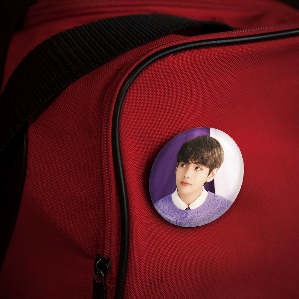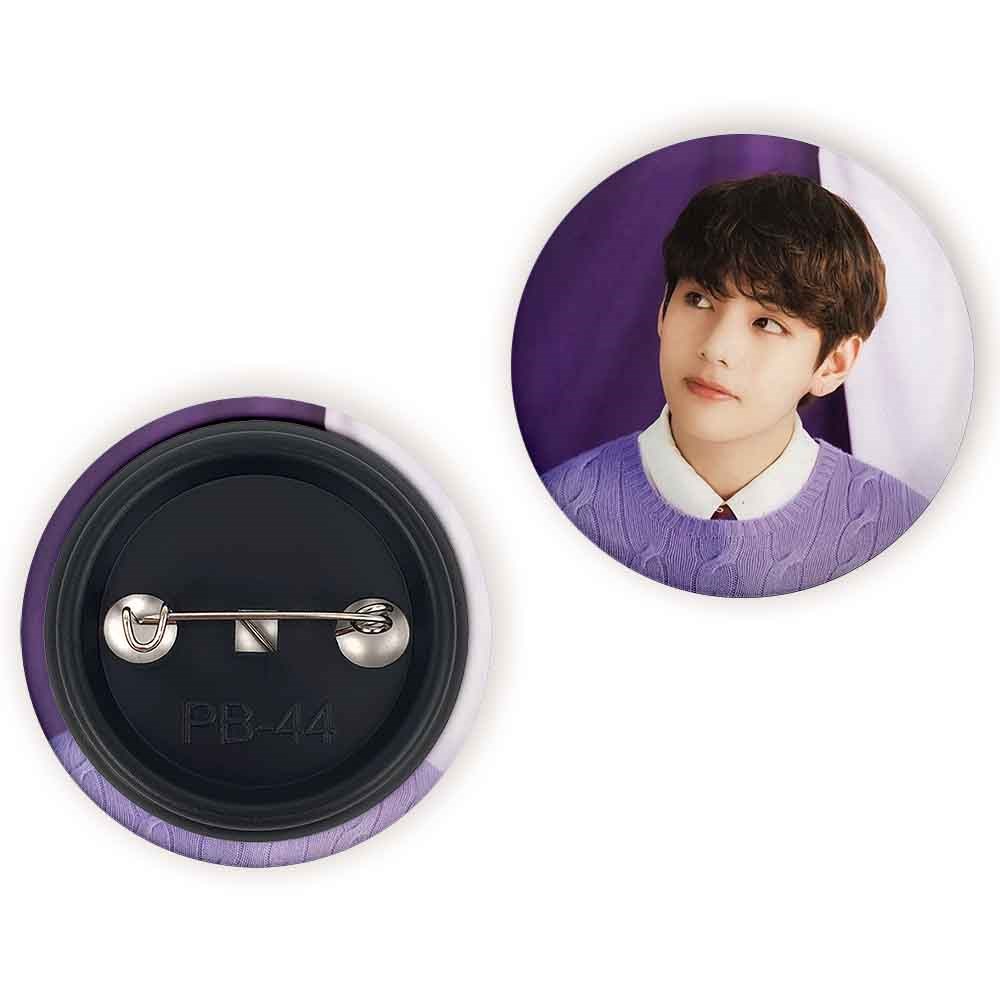 پیکسل 44 میلی متری تهیونگ وی Taehyung گروه بی تی اس BTS خندالو با روکش سلفون حرارتی مات مخملی ضدخش و قطعه پشتی رنگی تولید شده است.پلاستیکی پشت پیکسل با سوزن یک تکه ثابت و بدون لغزش و جا به جایی، ایستایی بسیار بهتری نسبت به پشتی فلزی پیکسل دارند که این مهم در تولید این محصول نیز رعایت شده است.