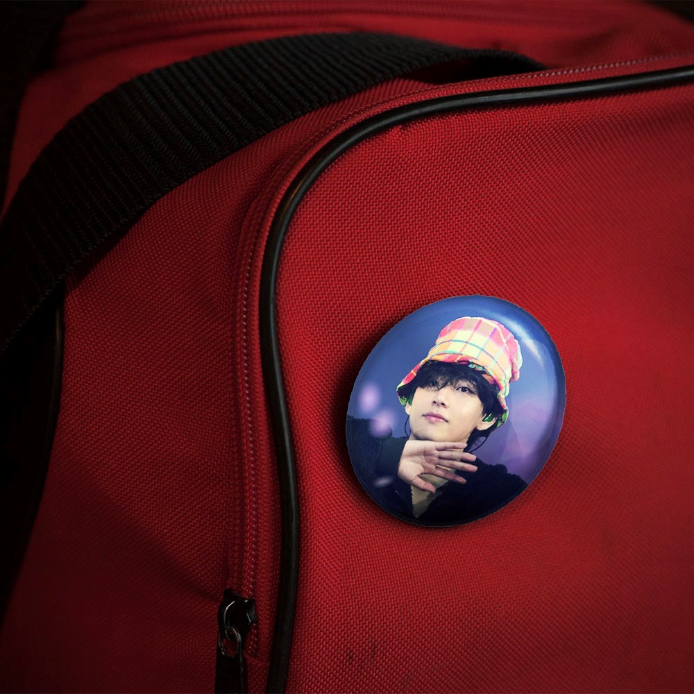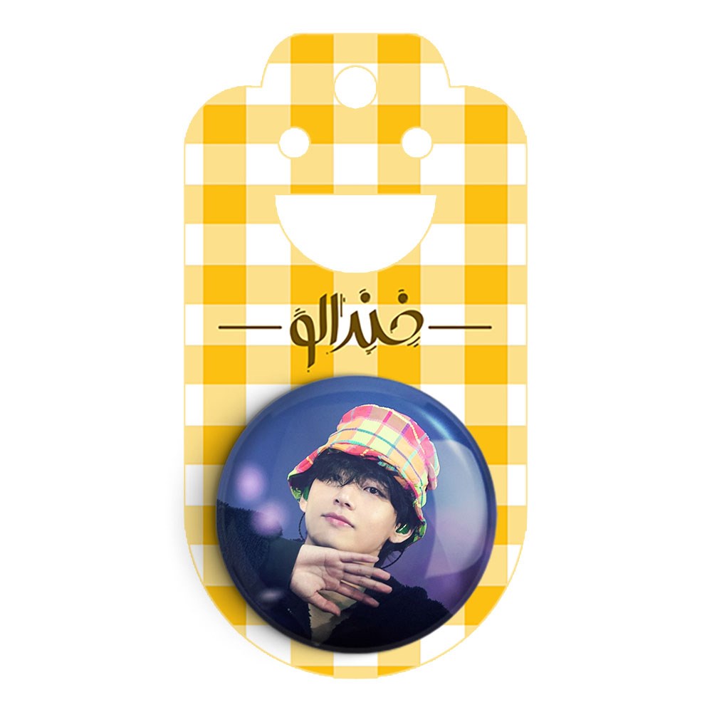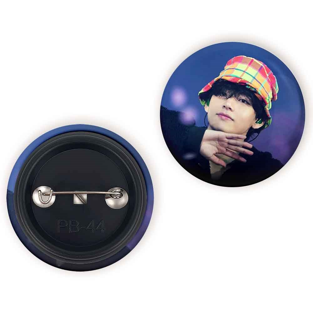 پیکسل 44 میلی متری تهیونگ وی Taehyung گروه بی تی اس BTS خندالو با روکش سلفون حرارتی مات مخملی ضدخش و قطعه پشتی رنگی تولید شده است.پلاستیکی پشت پیکسل با سوزن یک تکه ثابت و بدون لغزش و جا به جایی، ایستایی بسیار بهتری نسبت به پشتی فلزی پیکسل دارند که این مهم در تولید این محصول نیز رعایت شده است.