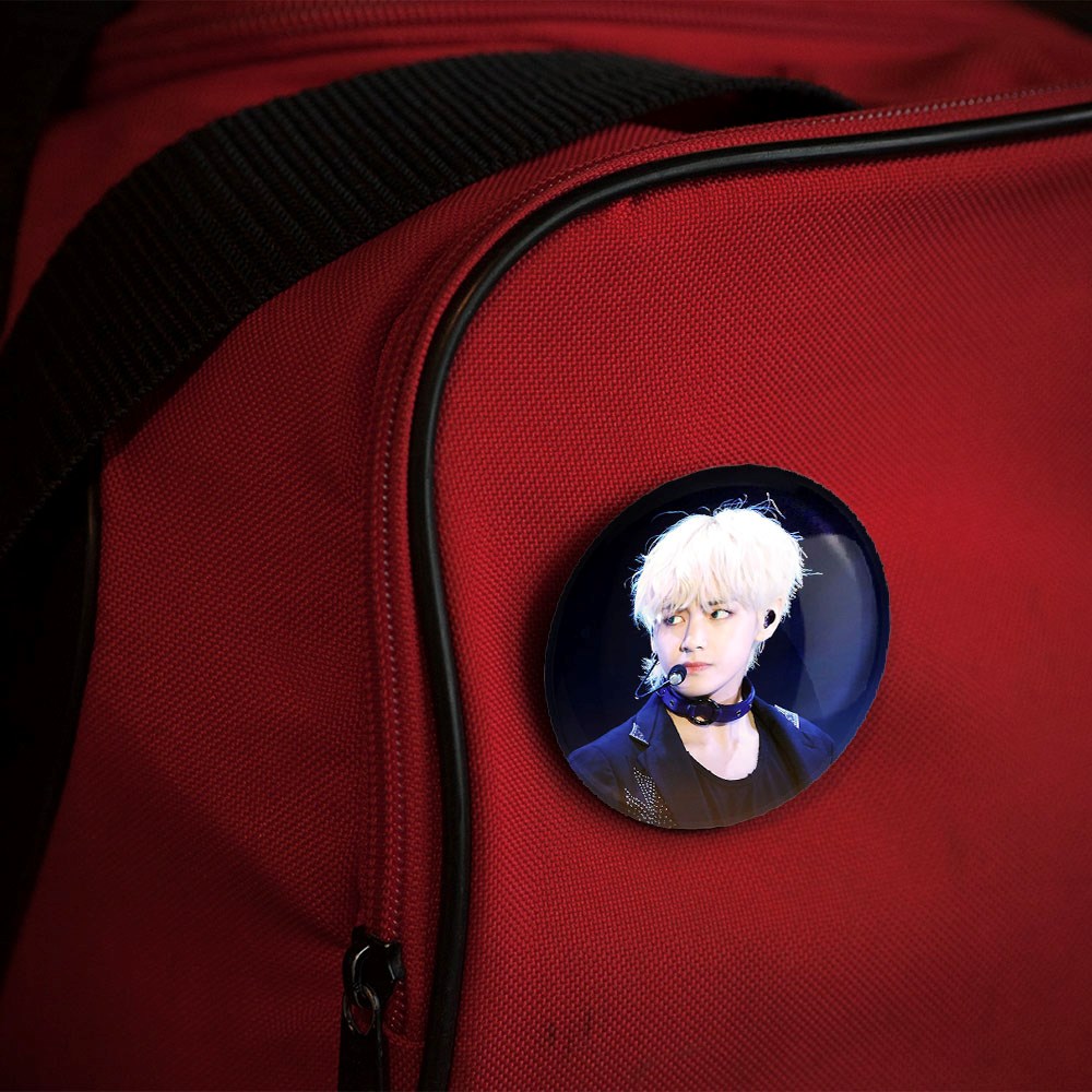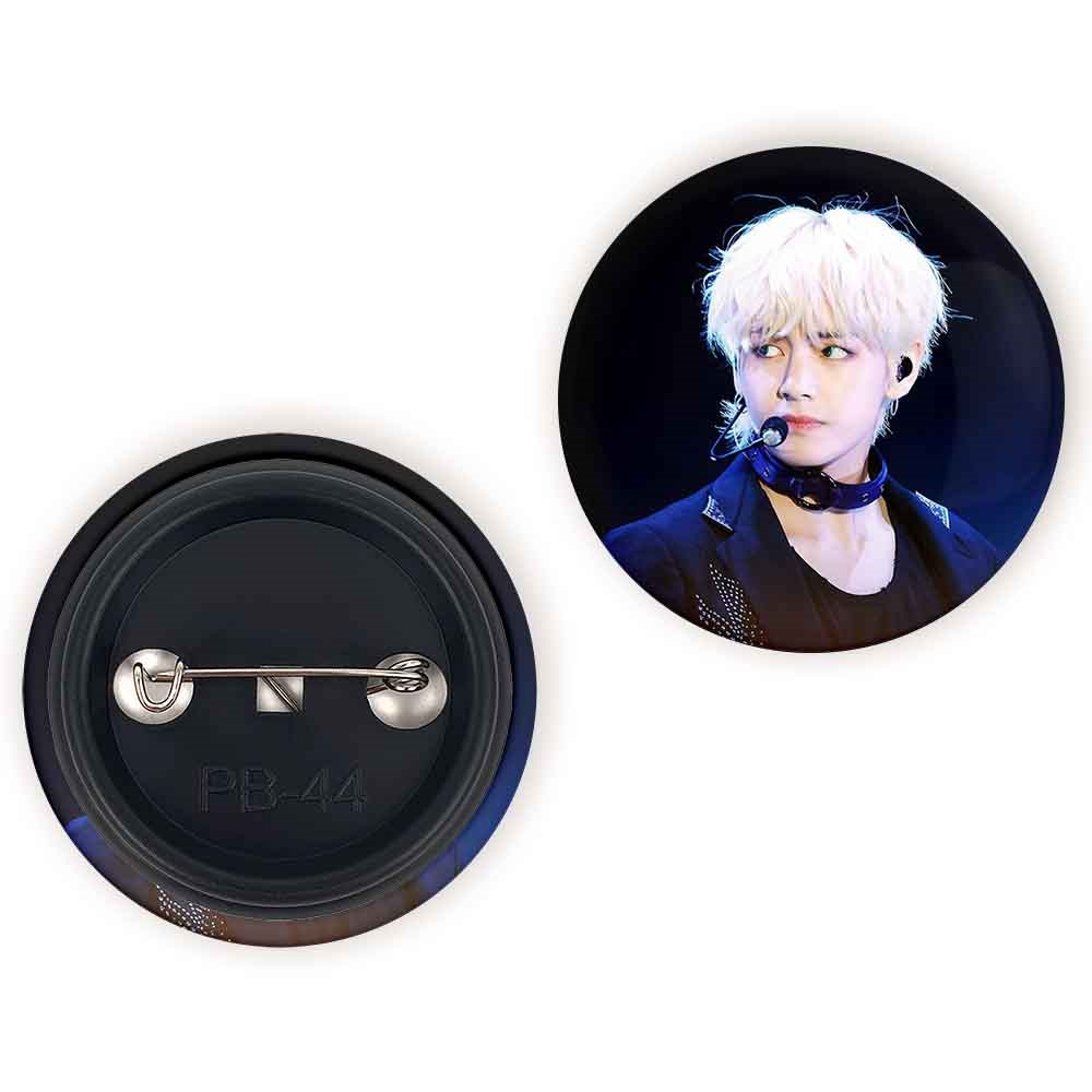 پیکسل 44 میلی متری تهیونگ وی Taehyung گروه بی تی اس BTS خندالو با روکش سلفون حرارتی مات مخملی ضدخش و قطعه پشتی رنگی تولید شده است.پلاستیکی پشت پیکسل با سوزن یک تکه ثابت و بدون لغزش و جا به جایی، ایستایی بسیار بهتری نسبت به پشتی فلزی پیکسل دارند که این مهم در تولید این محصول نیز رعایت شده است.