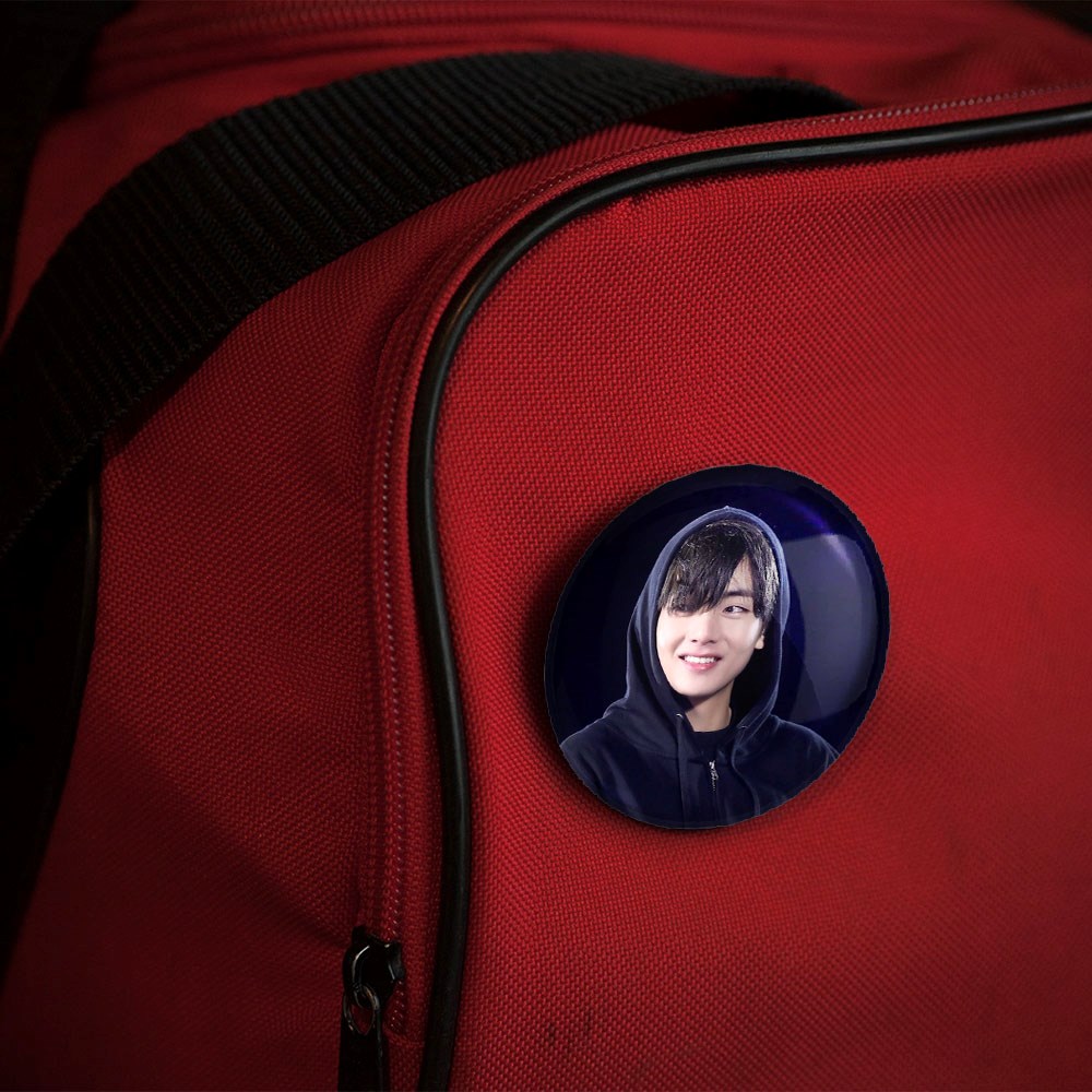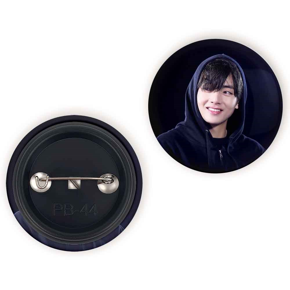 پیکسل 44 میلی متری تهیونگ وی Taehyung گروه بی تی اس BTS خندالو با روکش سلفون حرارتی مات مخملی ضدخش و قطعه پشتی رنگی تولید شده است.پلاستیکی پشت پیکسل با سوزن یک تکه ثابت و بدون لغزش و جا به جایی، ایستایی بسیار بهتری نسبت به پشتی فلزی پیکسل دارند که این مهم در تولید این محصول نیز رعایت شده است.
