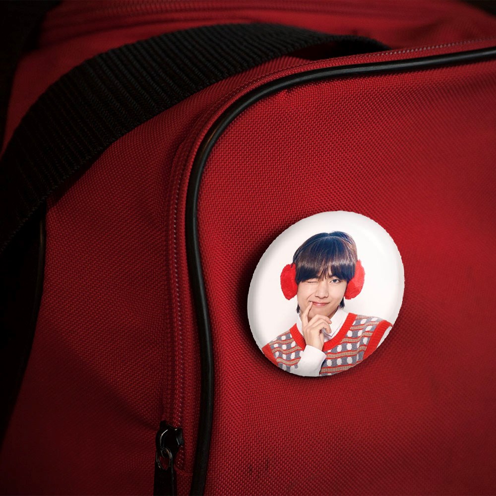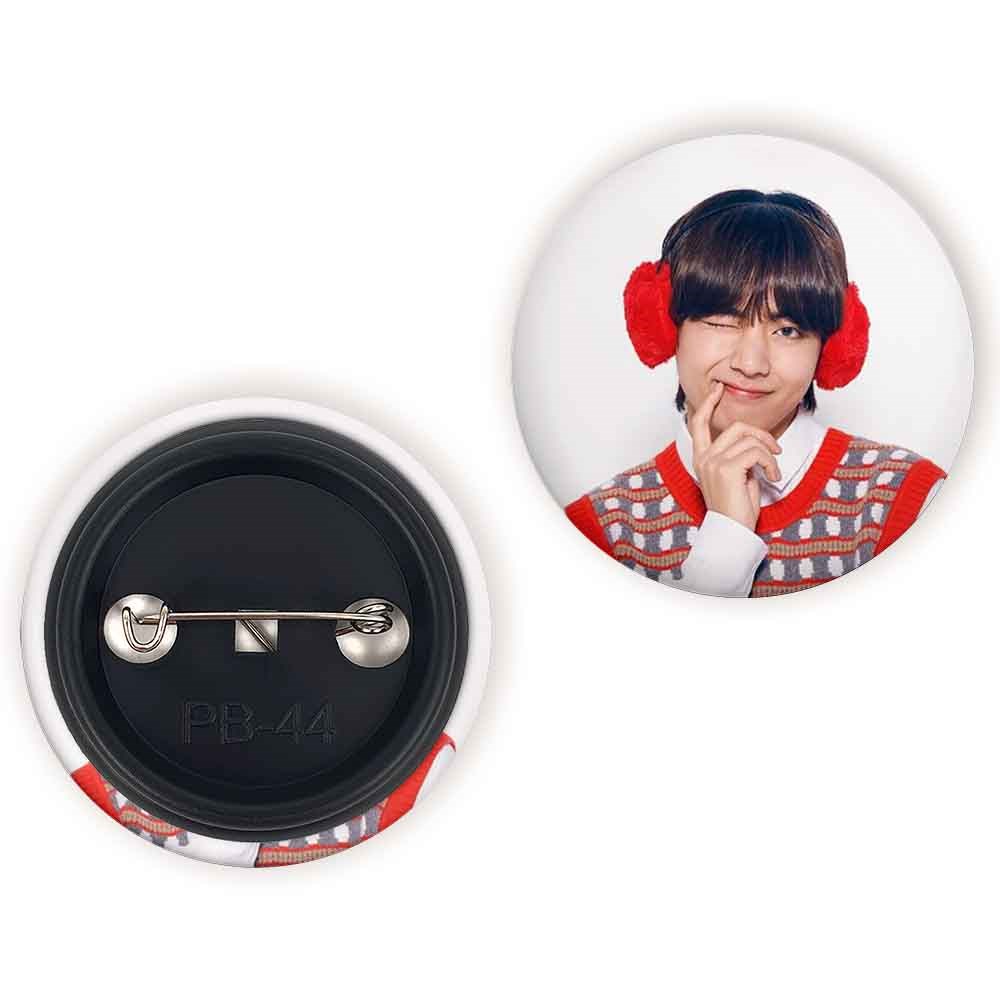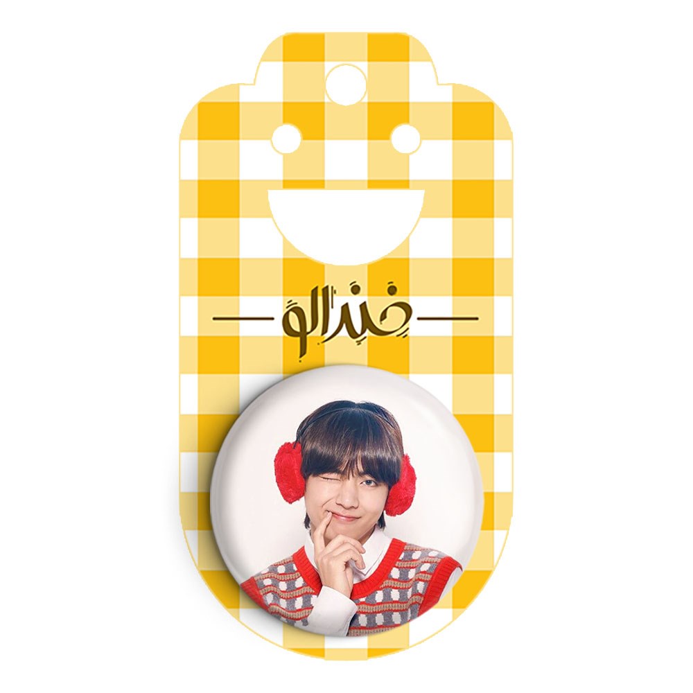 پیکسل 44 میلی متری تهیونگ وی Taehyung گروه بی تی اس BTS خندالو با روکش سلفون حرارتی مات مخملی ضدخش و قطعه پشتی رنگی تولید شده است.پلاستیکی پشت پیکسل با سوزن یک تکه ثابت و بدون لغزش و جا به جایی، ایستایی بسیار بهتری نسبت به پشتی فلزی پیکسل دارند که این مهم در تولید این محصول نیز رعایت شده است.