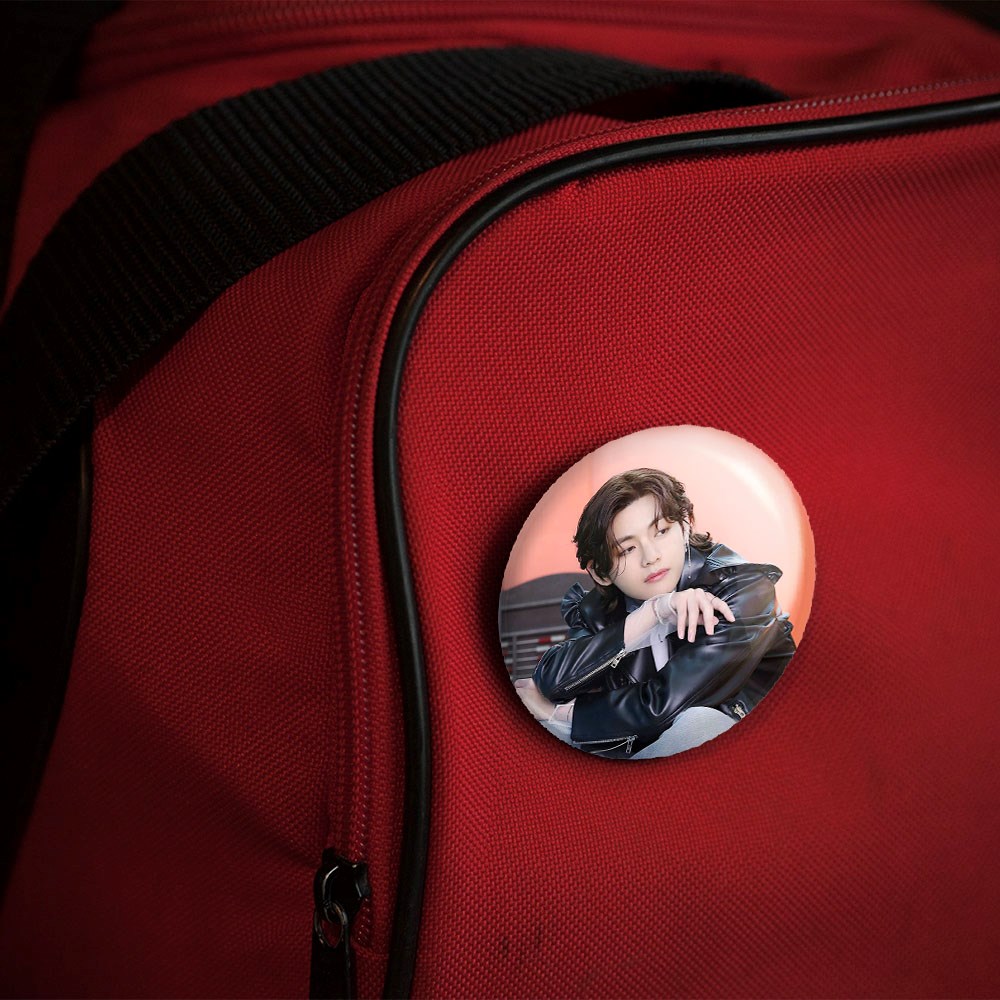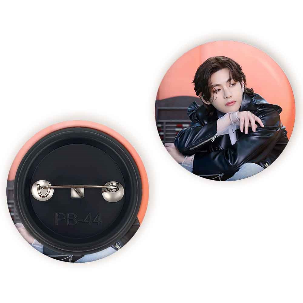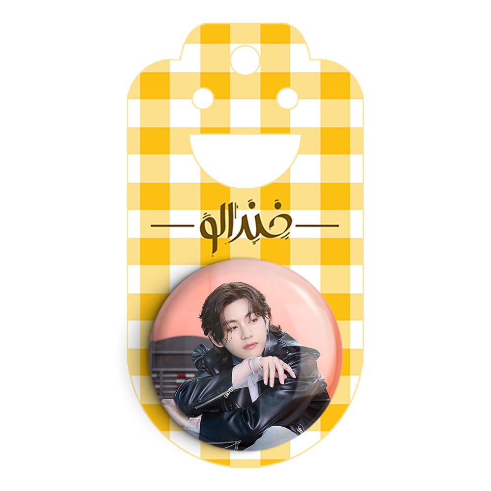 پیکسل 44 میلی متری تهیونگ وی Taehyung گروه بی تی اس BTS خندالو با روکش سلفون حرارتی مات مخملی ضدخش و قطعه پشتی رنگی تولید شده است.پلاستیکی پشت پیکسل با سوزن یک تکه ثابت و بدون لغزش و جا به جایی، ایستایی بسیار بهتری نسبت به پشتی فلزی پیکسل دارند که این مهم در تولید این محصول نیز رعایت شده است.