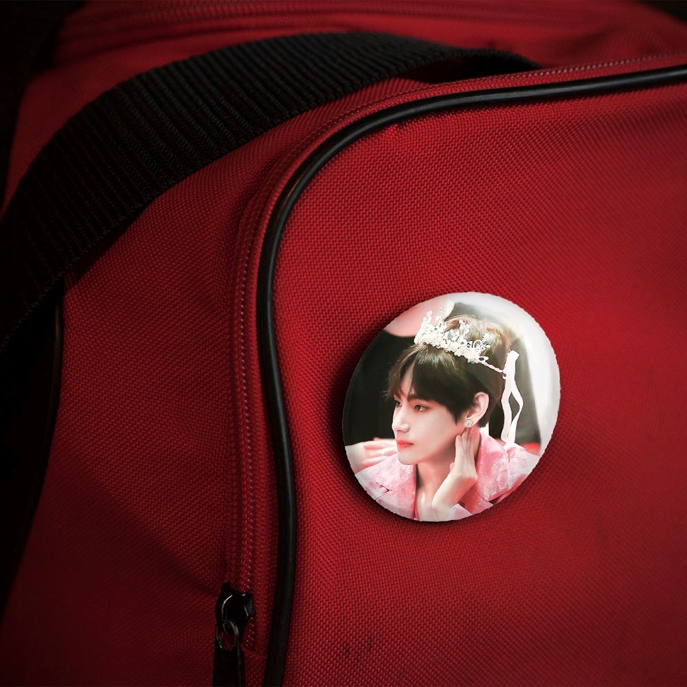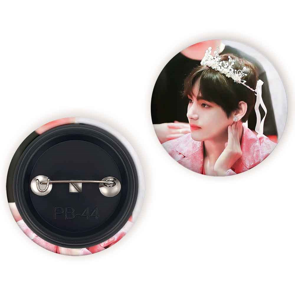 پیکسل 44 میلی متری تهیونگ وی Taehyung گروه بی تی اس BTS خندالو با روکش سلفون حرارتی مات مخملی ضدخش و قطعه پشتی رنگی تولید شده است.پلاستیکی پشت پیکسل با سوزن یک تکه ثابت و بدون لغزش و جا به جایی، ایستایی بسیار بهتری نسبت به پشتی فلزی پیکسل دارند که این مهم در تولید این محصول نیز رعایت شده است.