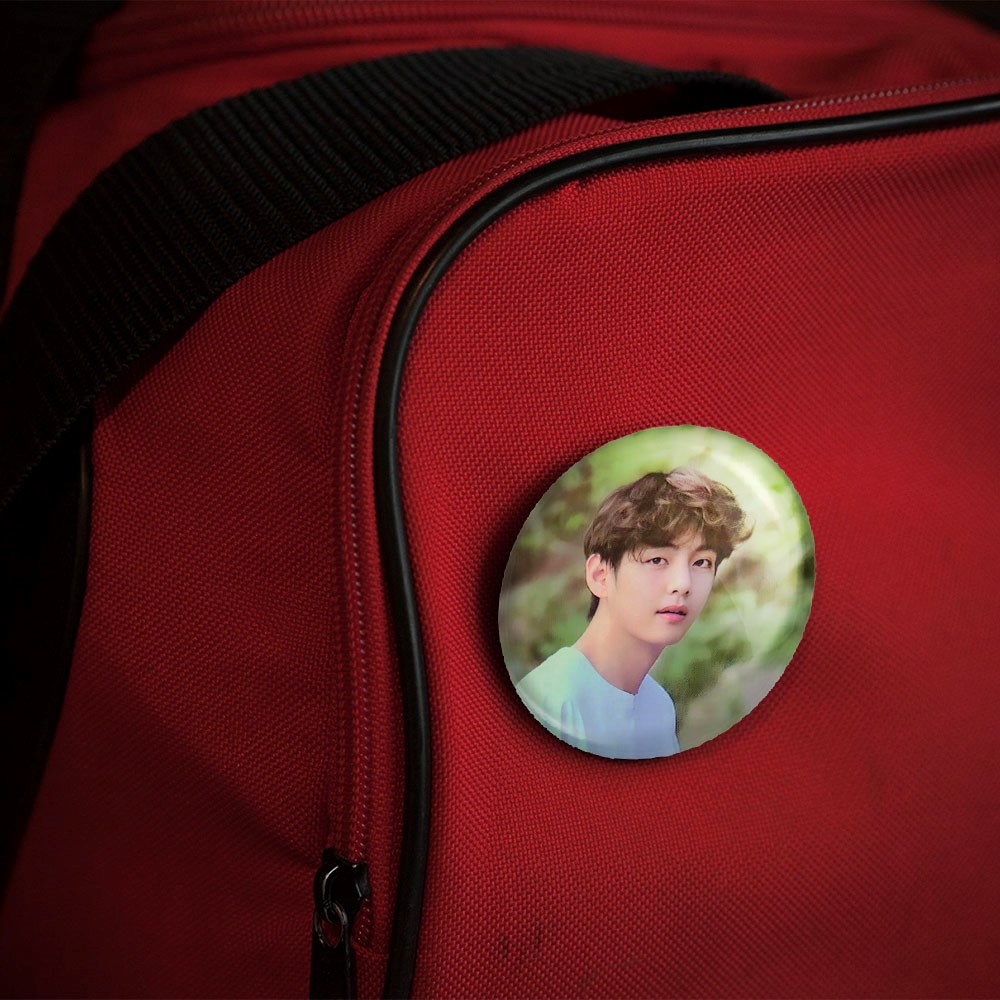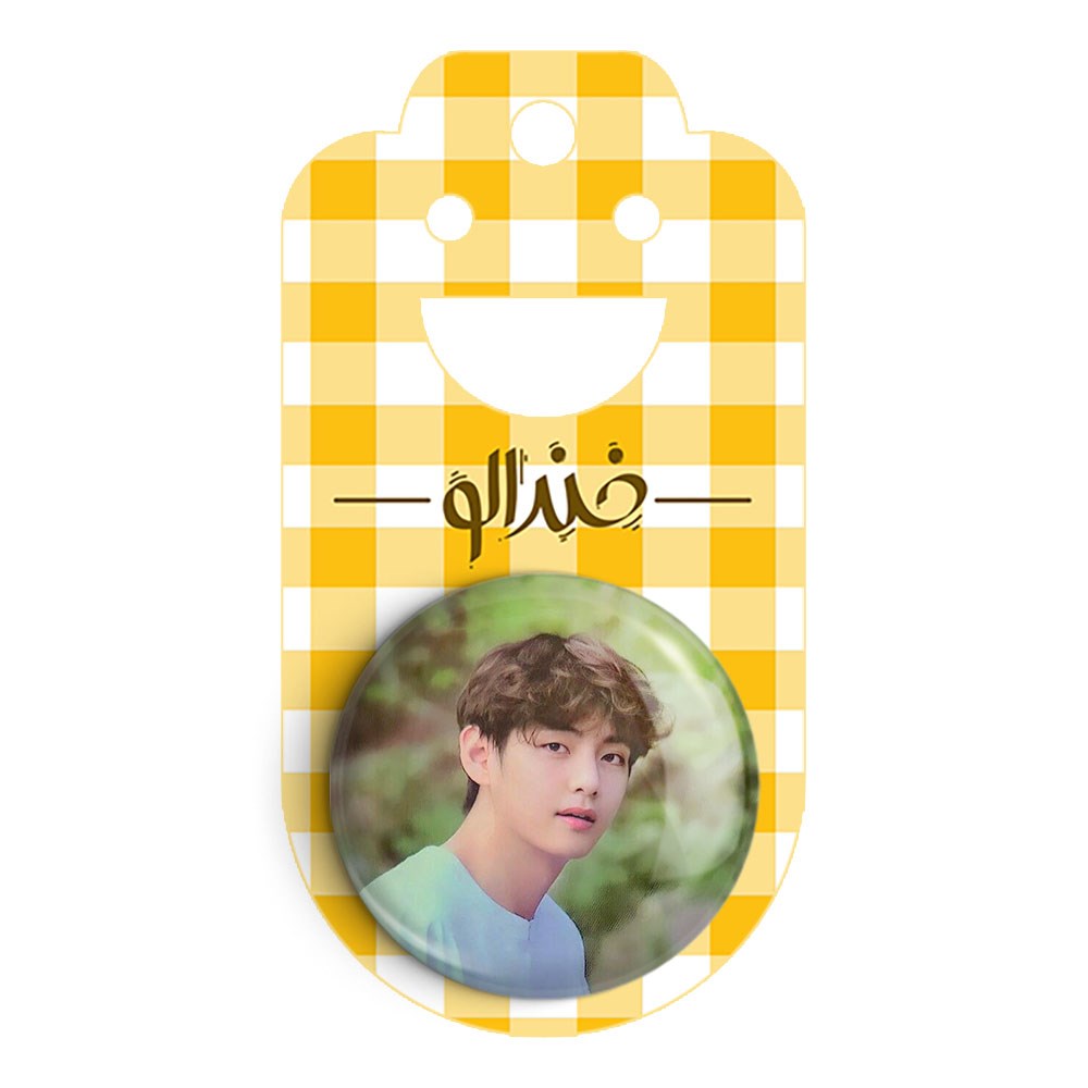 پیکسل 44 میلی متری تهیونگ وی Taehyung گروه بی تی اس BTS خندالو با روکش سلفون حرارتی مات مخملی ضدخش و قطعه پشتی رنگی تولید شده است.پلاستیکی پشت پیکسل با سوزن یک تکه ثابت و بدون لغزش و جا به جایی، ایستایی بسیار بهتری نسبت به پشتی فلزی پیکسل دارند که این مهم در تولید این محصول نیز رعایت شده است.