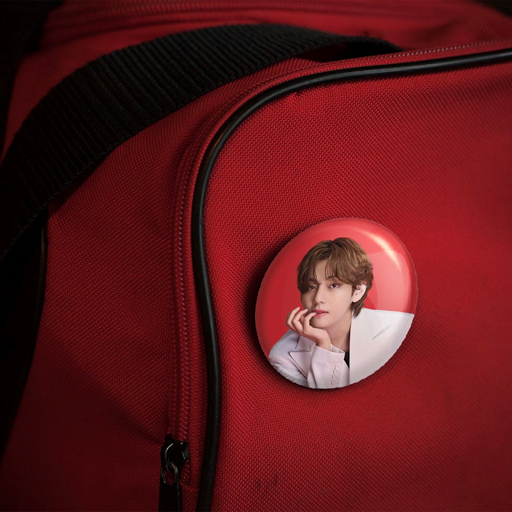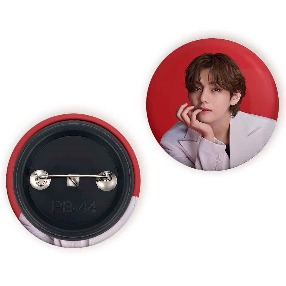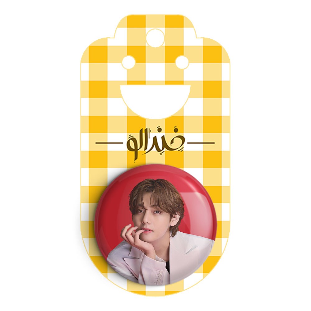 پیکسل 44 میلی متری تهیونگ وی Taehyung گروه بی تی اس BTS خندالو با روکش سلفون حرارتی مات مخملی ضدخش و قطعه پشتی رنگی تولید شده است.پلاستیکی پشت پیکسل با سوزن یک تکه ثابت و بدون لغزش و جا به جایی، ایستایی بسیار بهتری نسبت به پشتی فلزی پیکسل دارند که این مهم در تولید این محصول نیز رعایت شده است.