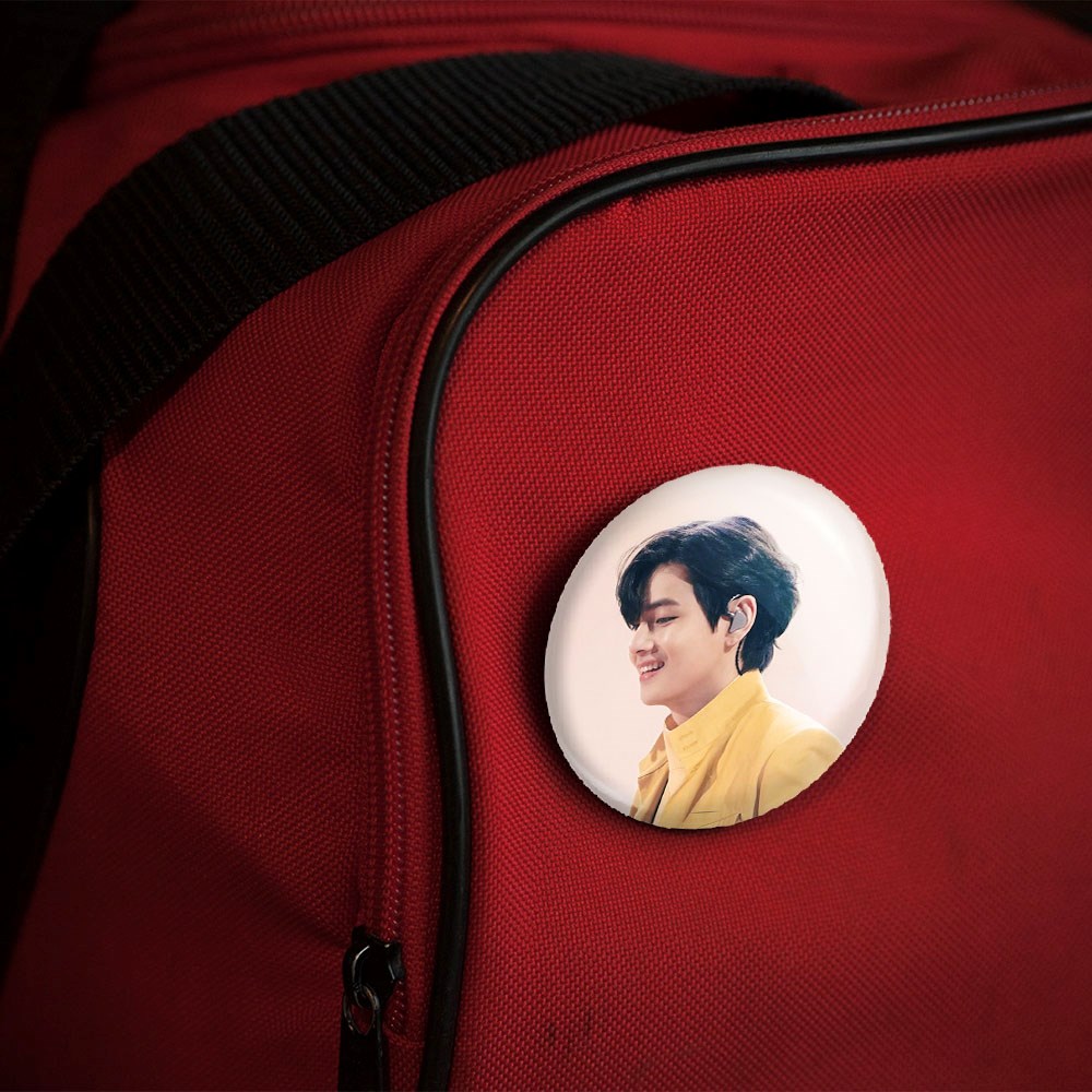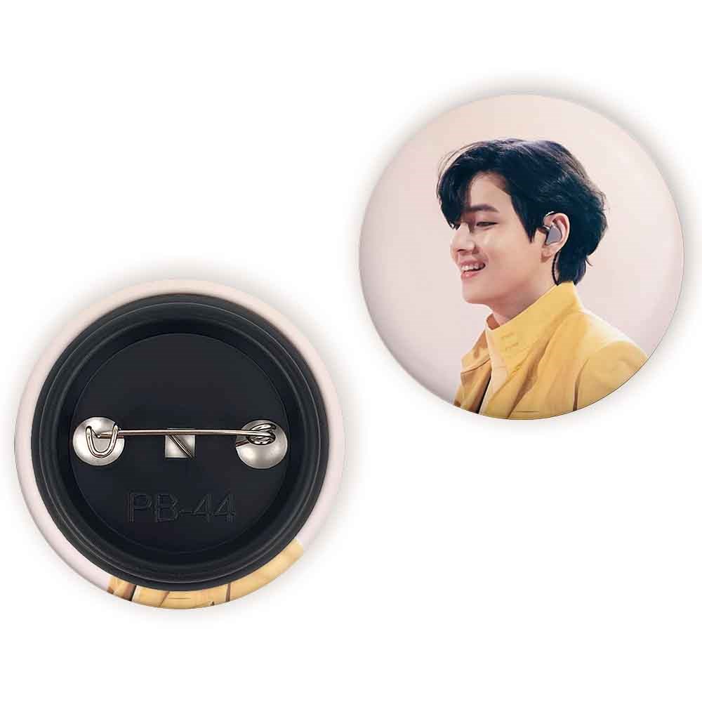 پیکسل 44 میلی متری تهیونگ وی Taehyung گروه بی تی اس BTS خندالو با روکش سلفون حرارتی مات مخملی ضدخش و قطعه پشتی رنگی تولید شده است.پلاستیکی پشت پیکسل با سوزن یک تکه ثابت و بدون لغزش و جا به جایی، ایستایی بسیار بهتری نسبت به پشتی فلزی پیکسل دارند که این مهم در تولید این محصول نیز رعایت شده است.