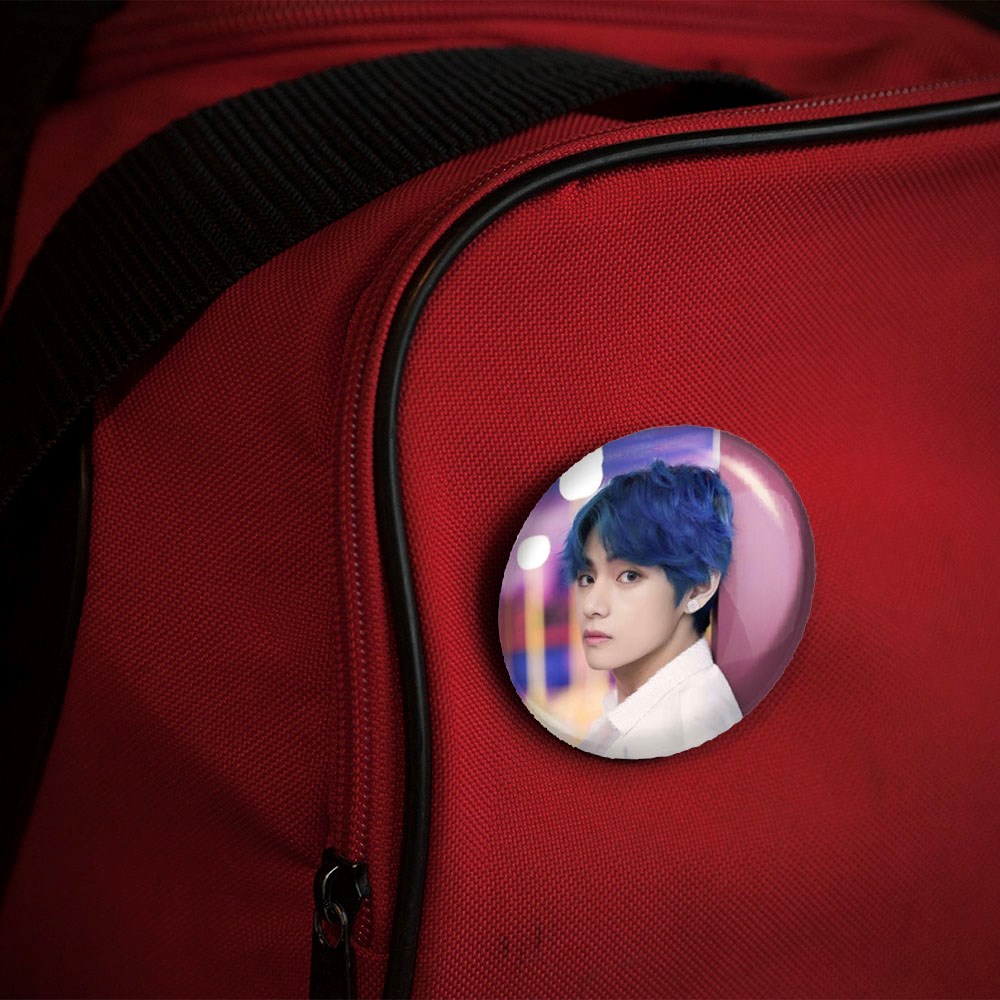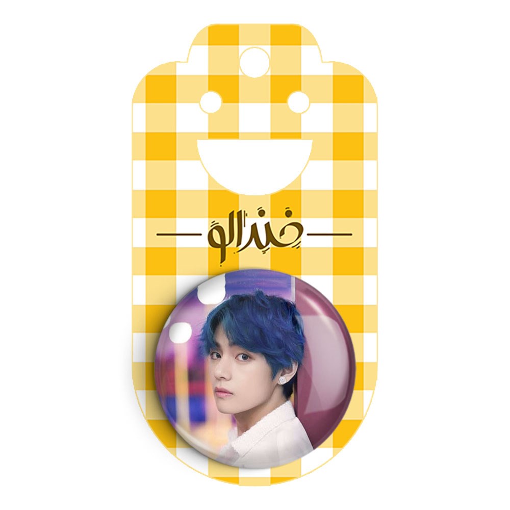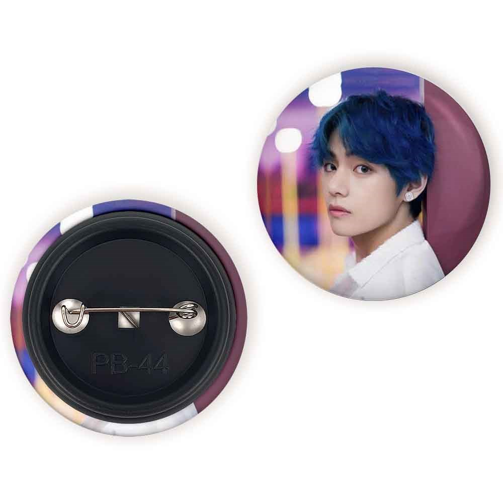 پیکسل 44 میلی متری تهیونگ وی Taehyung گروه بی تی اس BTS خندالو با روکش سلفون حرارتی مات مخملی ضدخش و قطعه پشتی رنگی تولید شده است.پلاستیکی پشت پیکسل با سوزن یک تکه ثابت و بدون لغزش و جا به جایی، ایستایی بسیار بهتری نسبت به پشتی فلزی پیکسل دارند که این مهم در تولید این محصول نیز رعایت شده است.