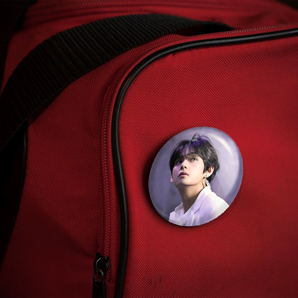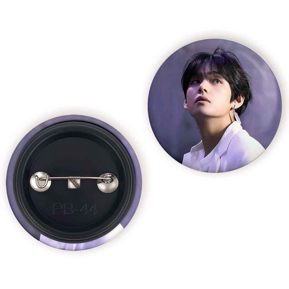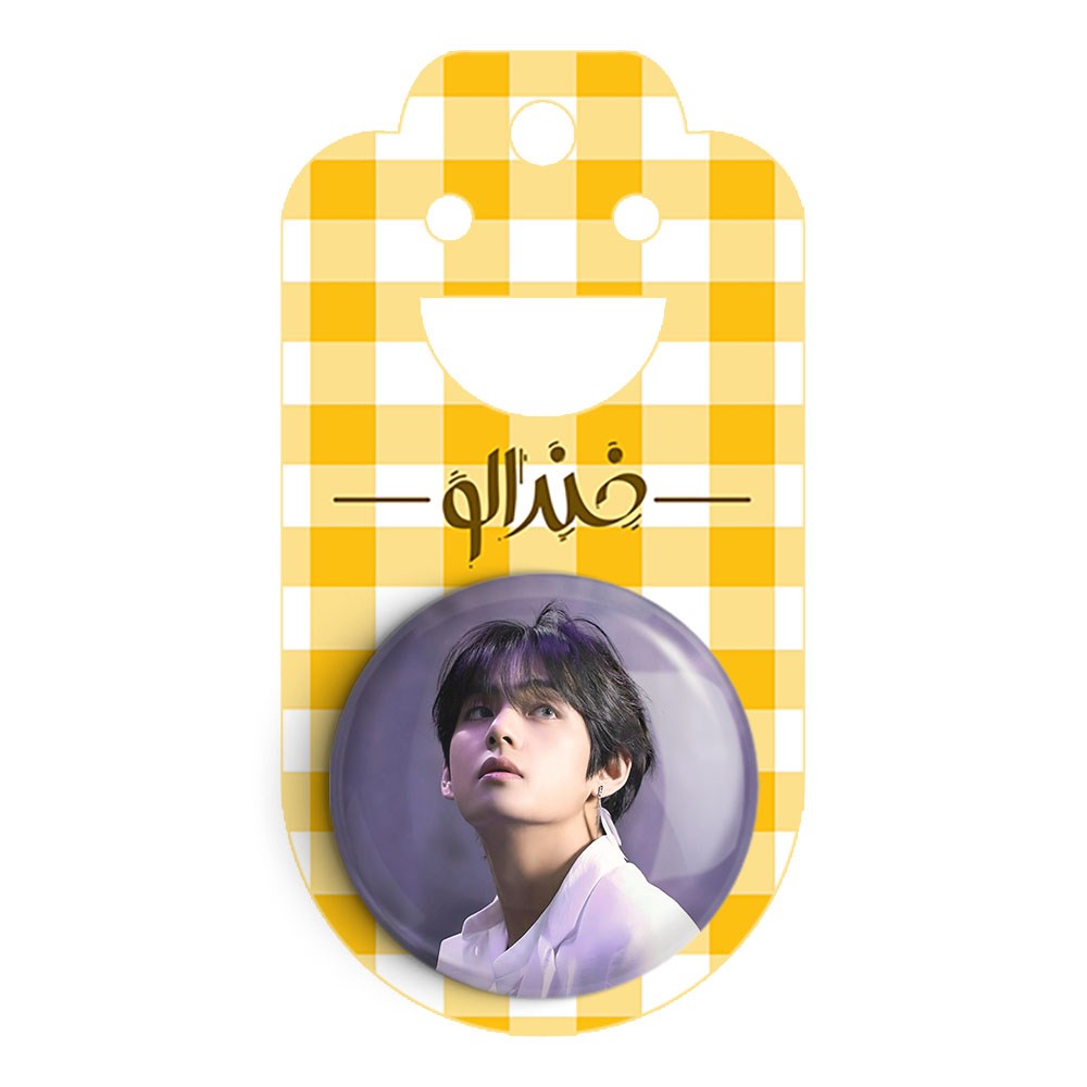 پیکسل 44 میلی متری تهیونگ وی Taehyung گروه بی تی اس BTS خندالو با روکش سلفون حرارتی مات مخملی ضدخش و قطعه پشتی رنگی تولید شده است.پلاستیکی پشت پیکسل با سوزن یک تکه ثابت و بدون لغزش و جا به جایی، ایستایی بسیار بهتری نسبت به پشتی فلزی پیکسل دارند که این مهم در تولید این محصول نیز رعایت شده است.