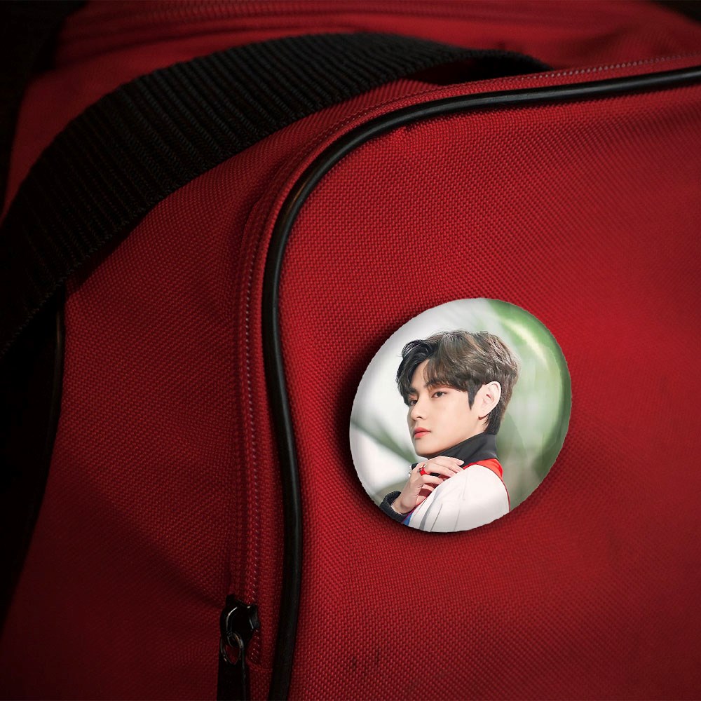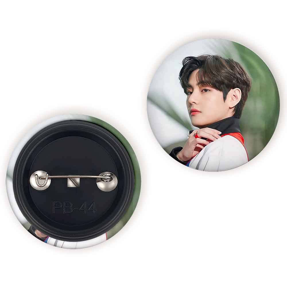 پیکسل 44 میلی متری تهیونگ وی Taehyung گروه بی تی اس BTS خندالو با روکش سلفون حرارتی مات مخملی ضدخش و قطعه پشتی رنگی تولید شده است.پلاستیکی پشت پیکسل با سوزن یک تکه ثابت و بدون لغزش و جا به جایی، ایستایی بسیار بهتری نسبت به پشتی فلزی پیکسل دارند که این مهم در تولید این محصول نیز رعایت شده است.
